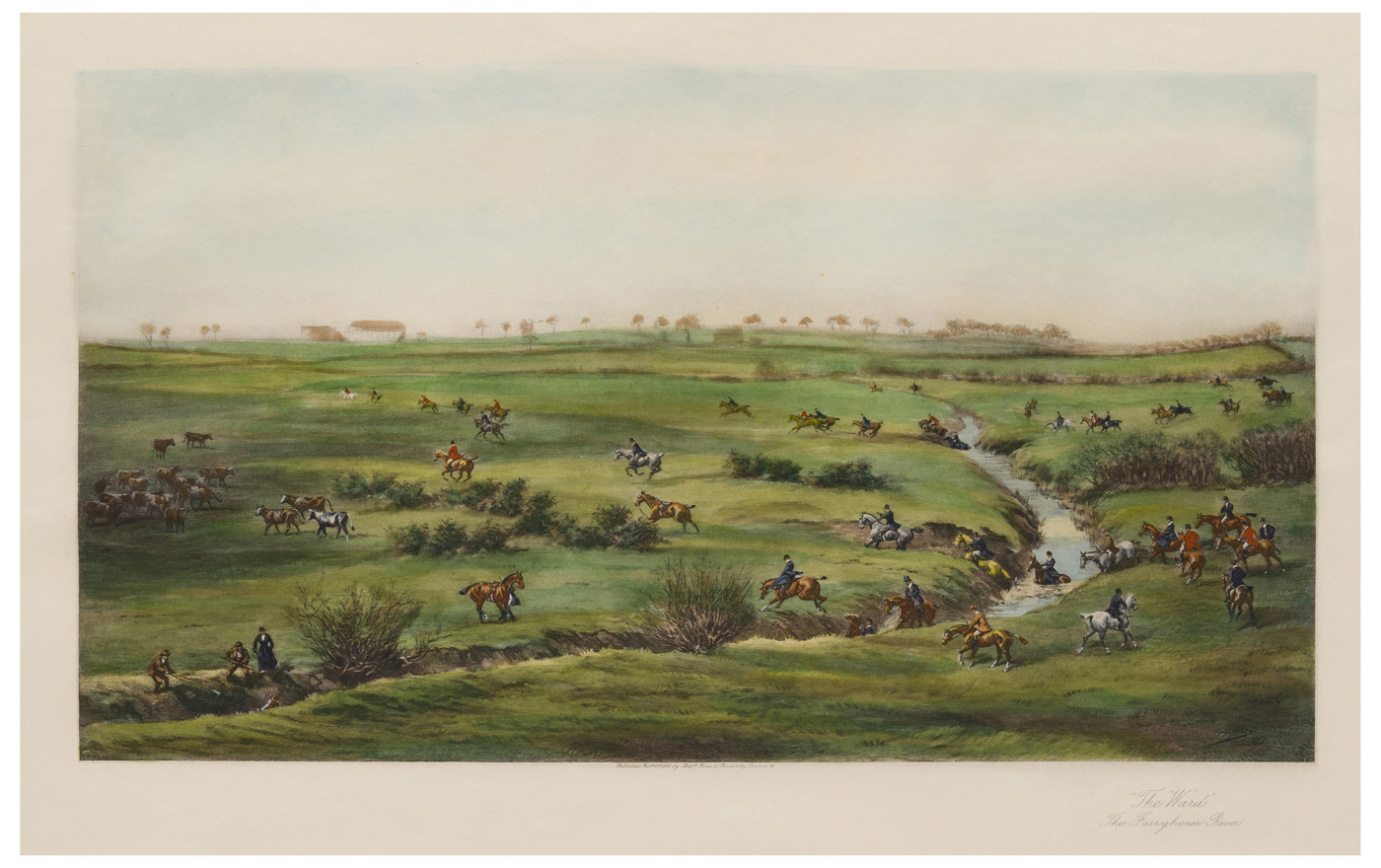 Fa parte di un coppia di stampe prodotta in Inghilterra all'inizio del XX secolo per arredo (The Kildare - a gallop across Punchestown'; 'The Ward - the Fairyhouse River'), a partire da dipinti sul tema della caccia di Geoffrey Douglas Giles (1857-1941).