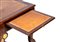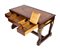 Altezza x larghezza x profondità: 74 x 128 x 66 cm. Due alette estraibili da 39 cm cadauno. fronte con tre cassetti, con applicazioni in bronzo dorato. Piano in pelle.