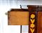 Altezza x larghezza x profondità: 142 x 89 x 41 cm. in mogano con intarsi floreali in legno di acero, a due ante nella parte inferiore con ribalta superiore e cassetto sotto il piano superiore; ferramenta originale.