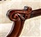in legno di mogano, finemente intagliata a motivi floreali, restaurata e tappezzata recentemente.