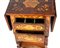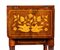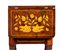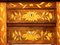 tavolo da centro, in mogano e piuma di mogano, con due alette laterali, due cassetti e due ripiani. Completamente intarsiato a motivi floreali in legno di bosso.
