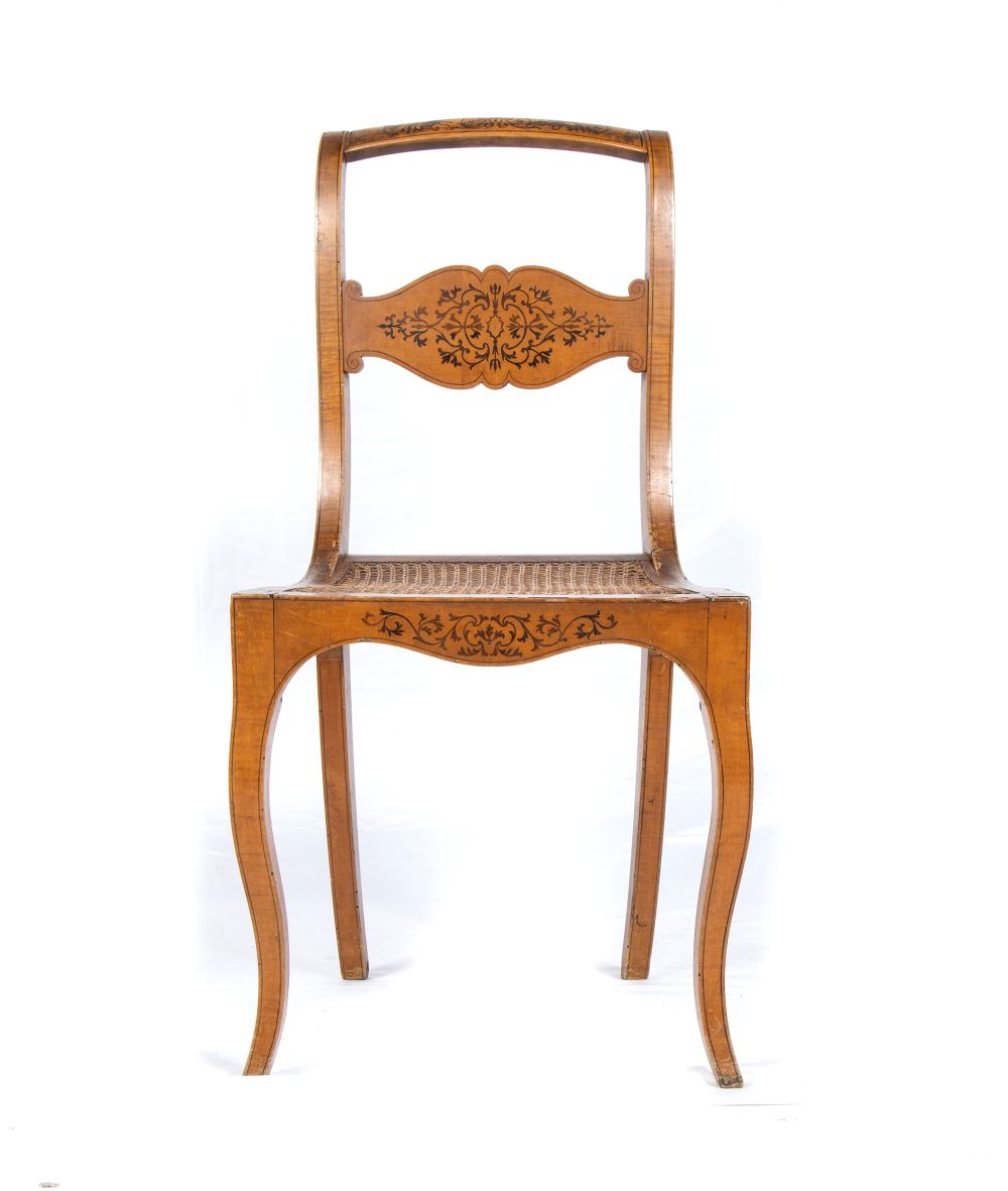 Set sedie italiane in legno di acero intarsiate, Carlo X XIX secolo