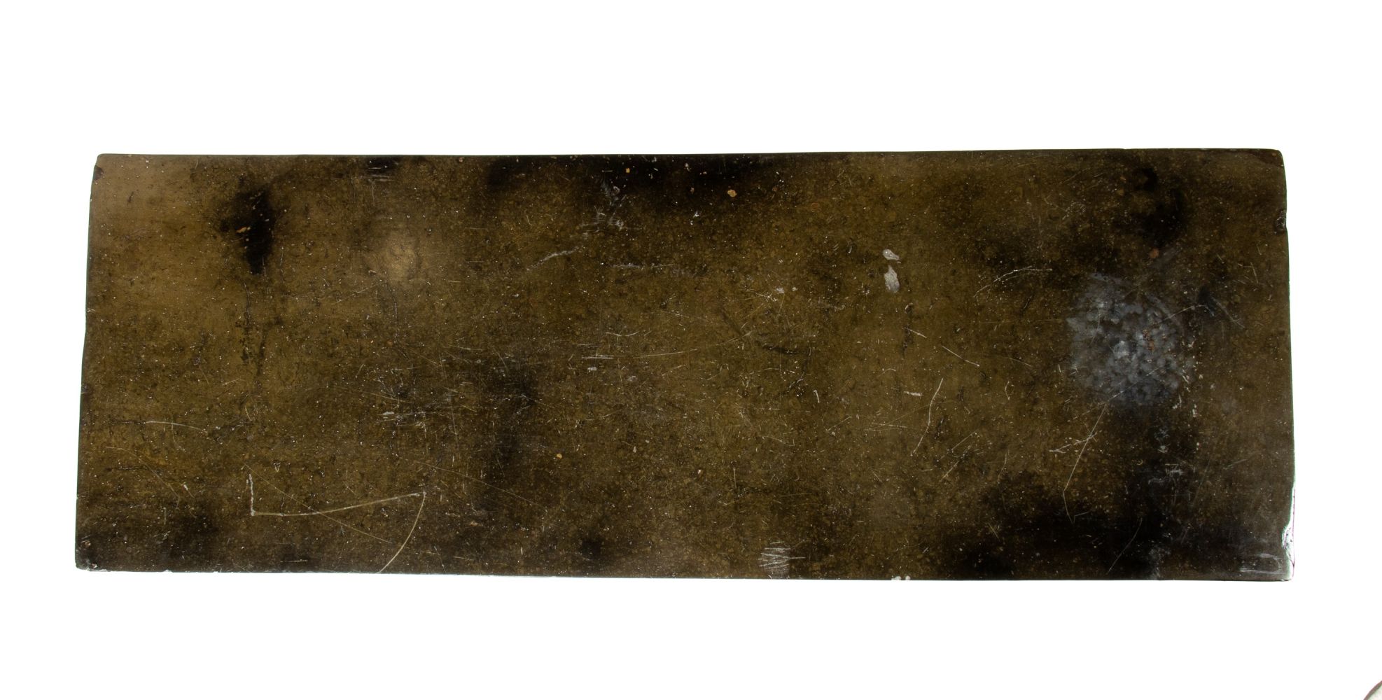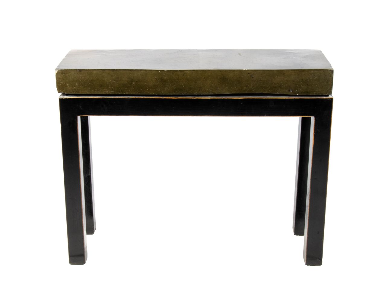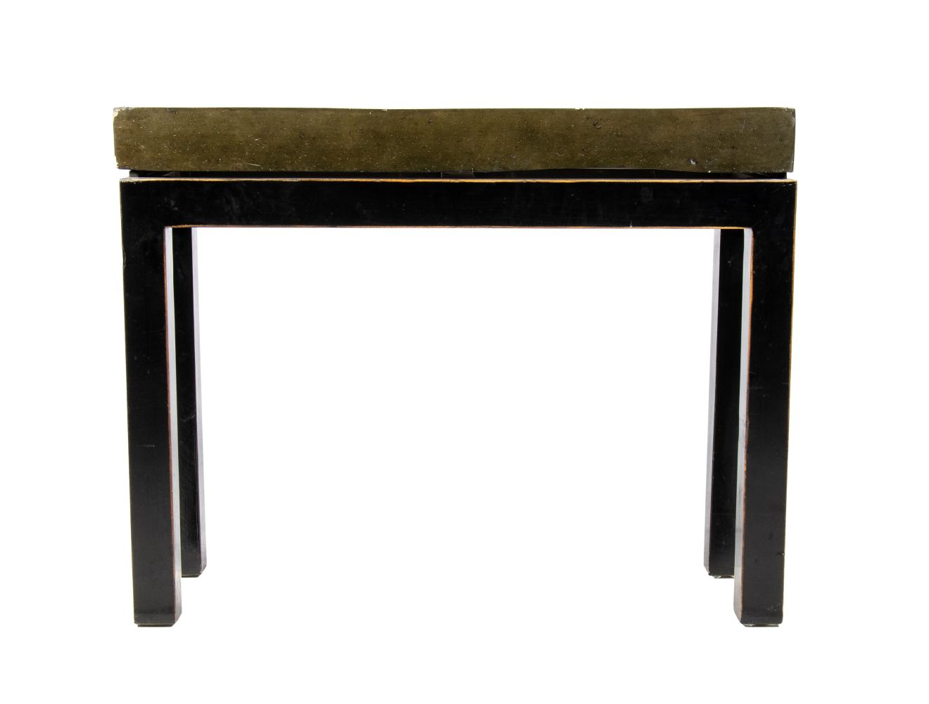 Altezza x larghezza x profondità: 76 x 97 x 34 cm Di forma rettangolare struttura unica, in legno ebanizzato, a sorreggere l’imponente pietra verde del piano. Piano con lievi difetti.