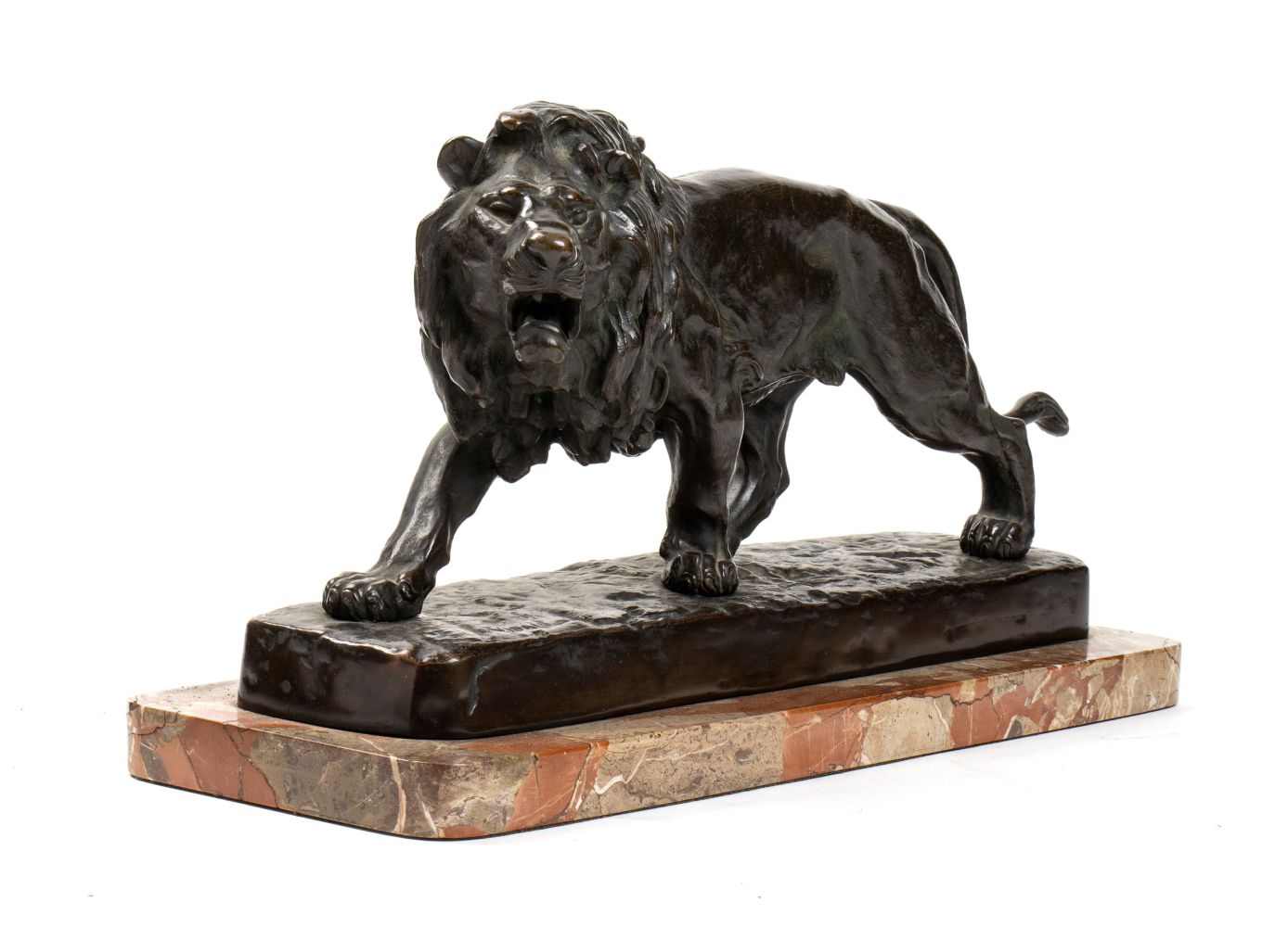 Louis Vidal (1831 - 1892, ) Scultura in bronzo raffigurante un leone XX...
