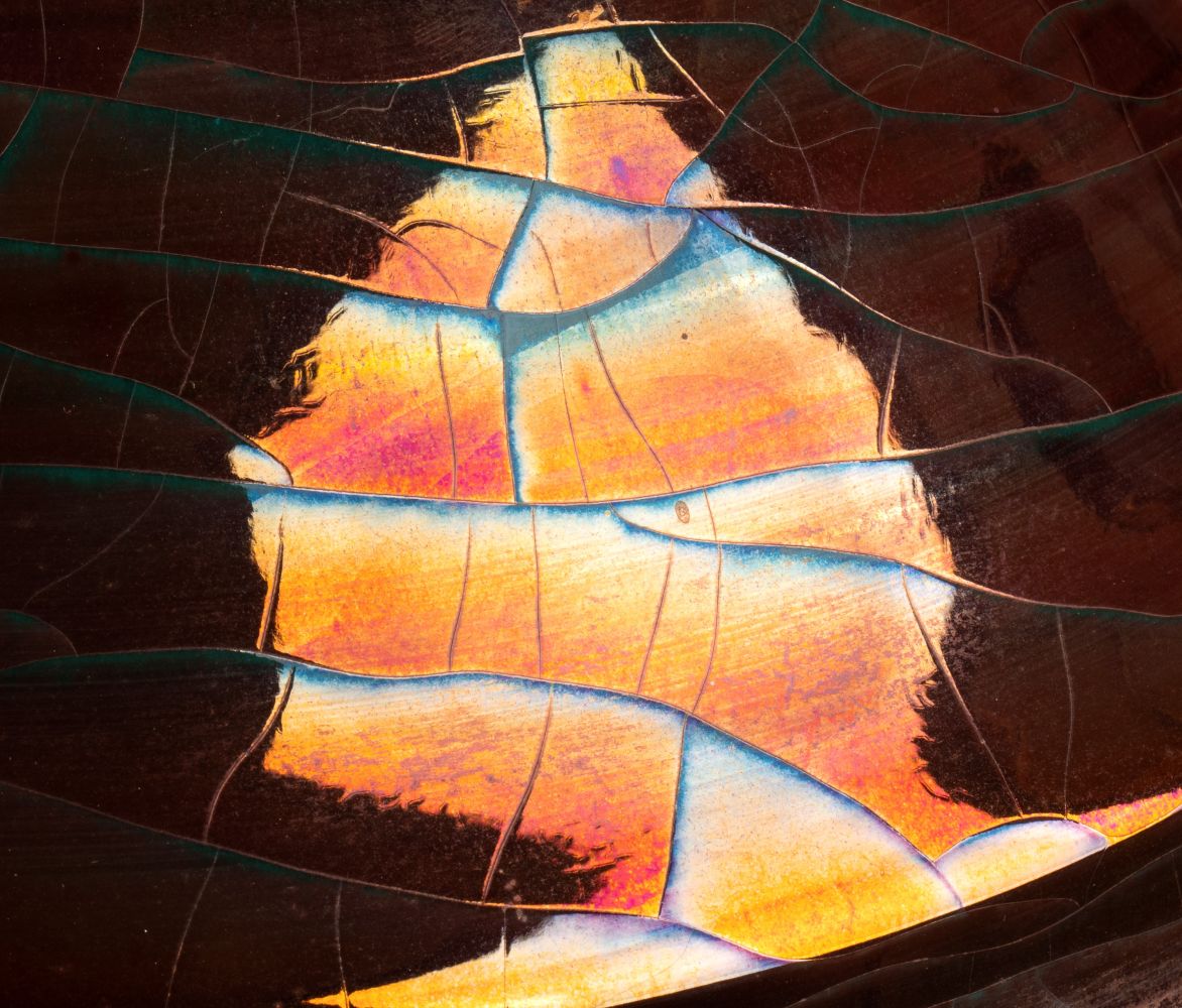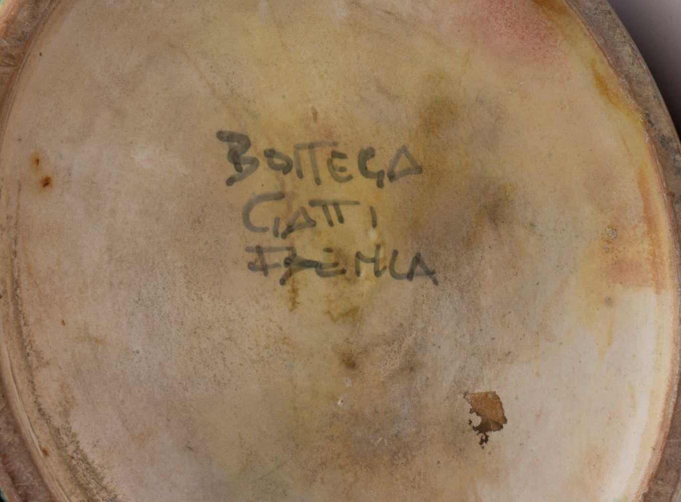 interamente smaltato con smalti aurei color oro fiorentino e rifinito a lustro con metalli pesanti. Nella parte sottostante "Bottega Gatti Faenza".