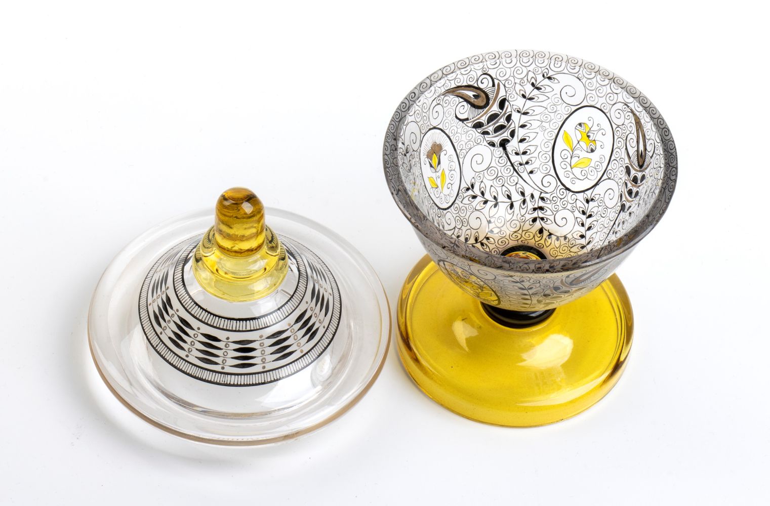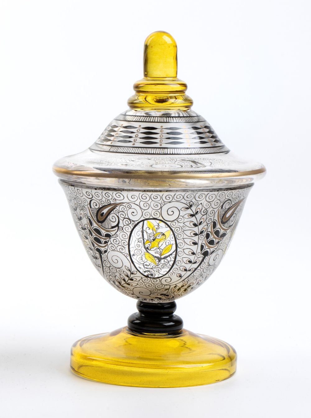 Lot 155 | Vaso in vetro con coperchio Inizio XX secolo Altezza x diametro: 16 x 10 cm....