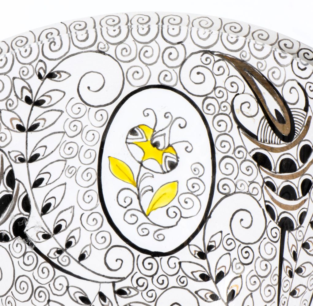 in vetro soffiato giallo on decorazioni floreali nei toni del nero.