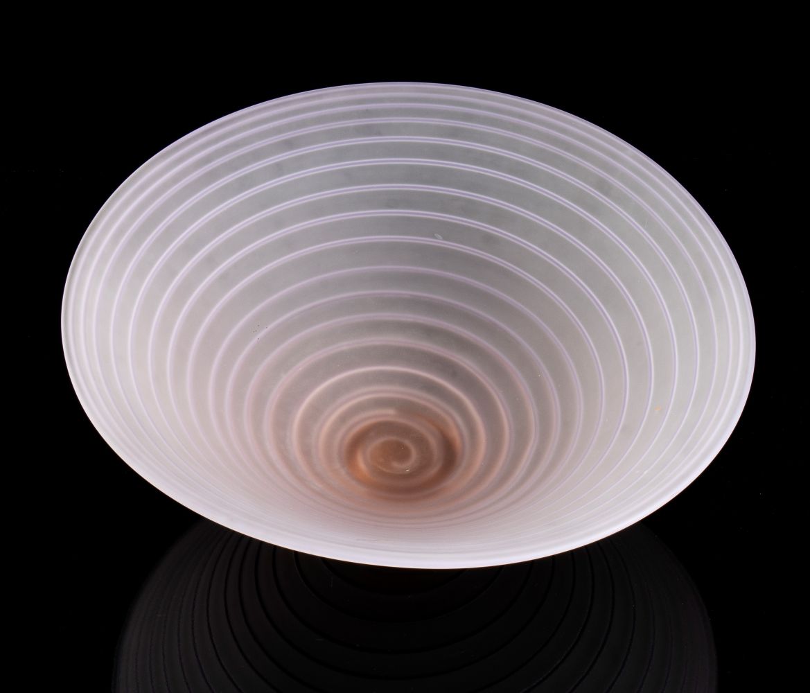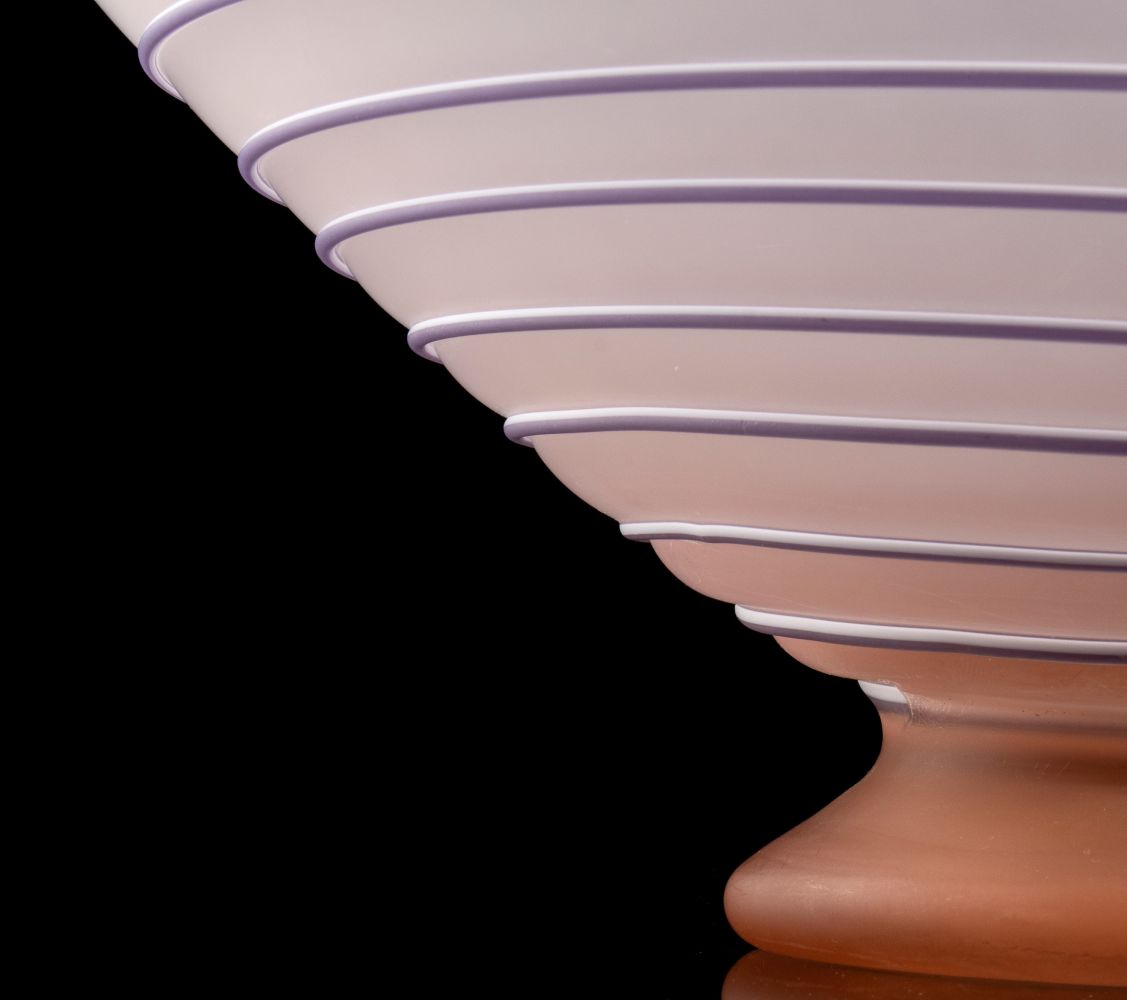 In vetro rosa con motivo spiraliforme. Non firmato.