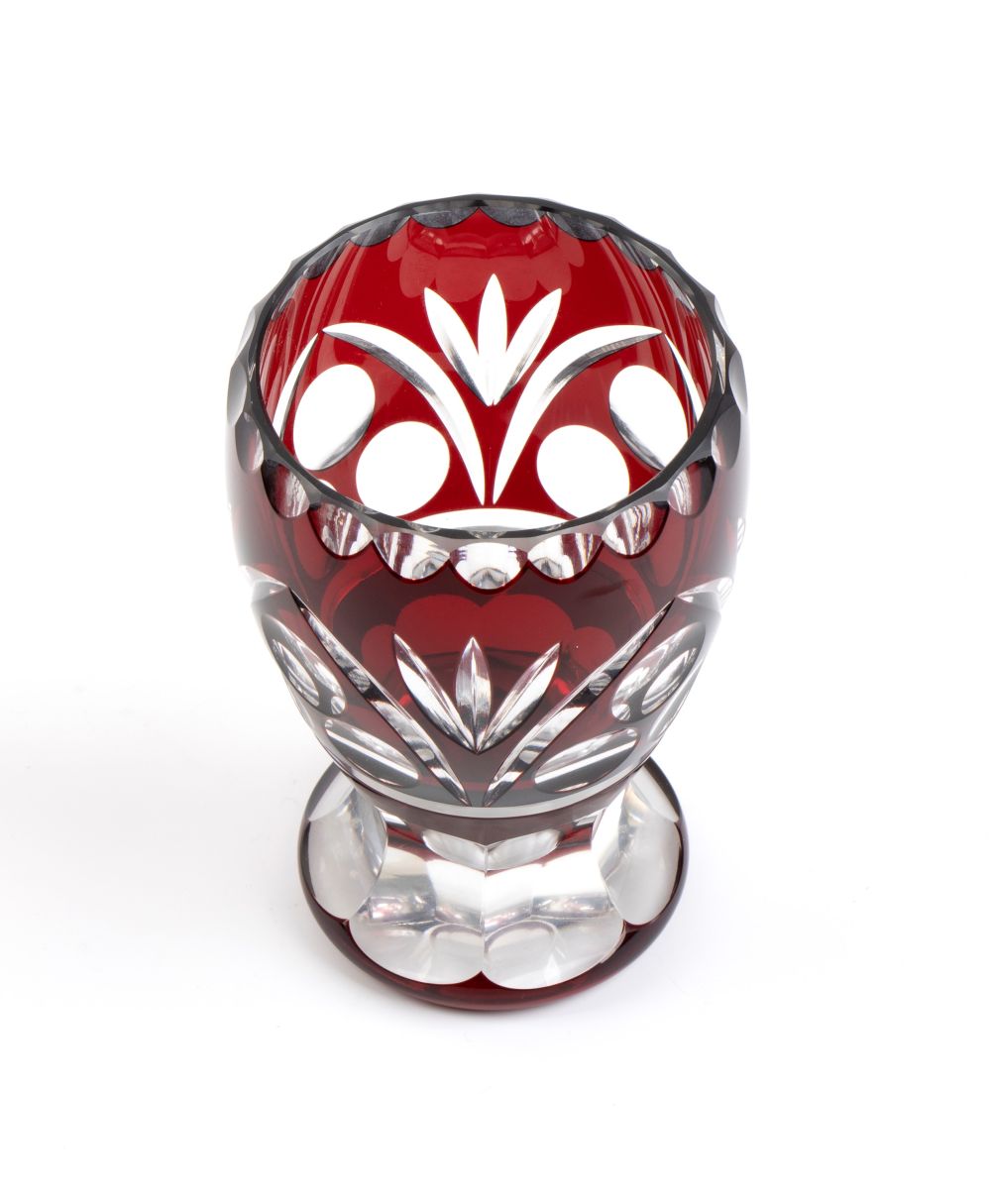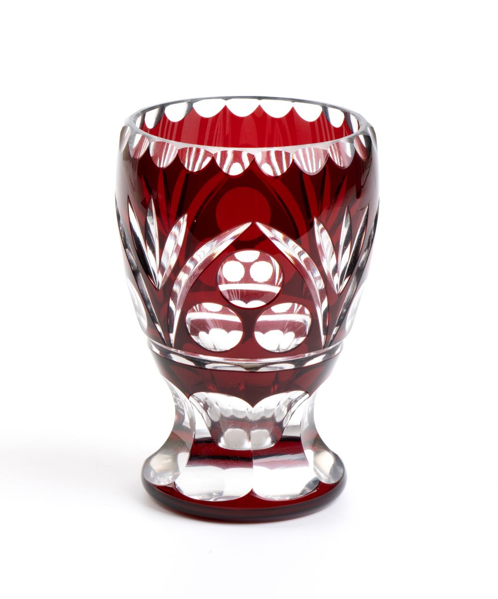 Bicchiere in cristallo di Boemia XX secolo di colore rubino, molato e inciso...