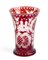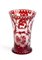 di colore rubino, molato e inciso con decori floreali e animali in stile Biedermeier.
