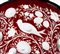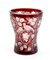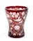 di colore rubino, molato e inciso con decori floreali e uccelli in stile Biedermeier.