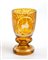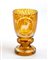 di colore giallo, molato e inciso con decori floreali e animali in stile Biedermeier.