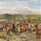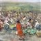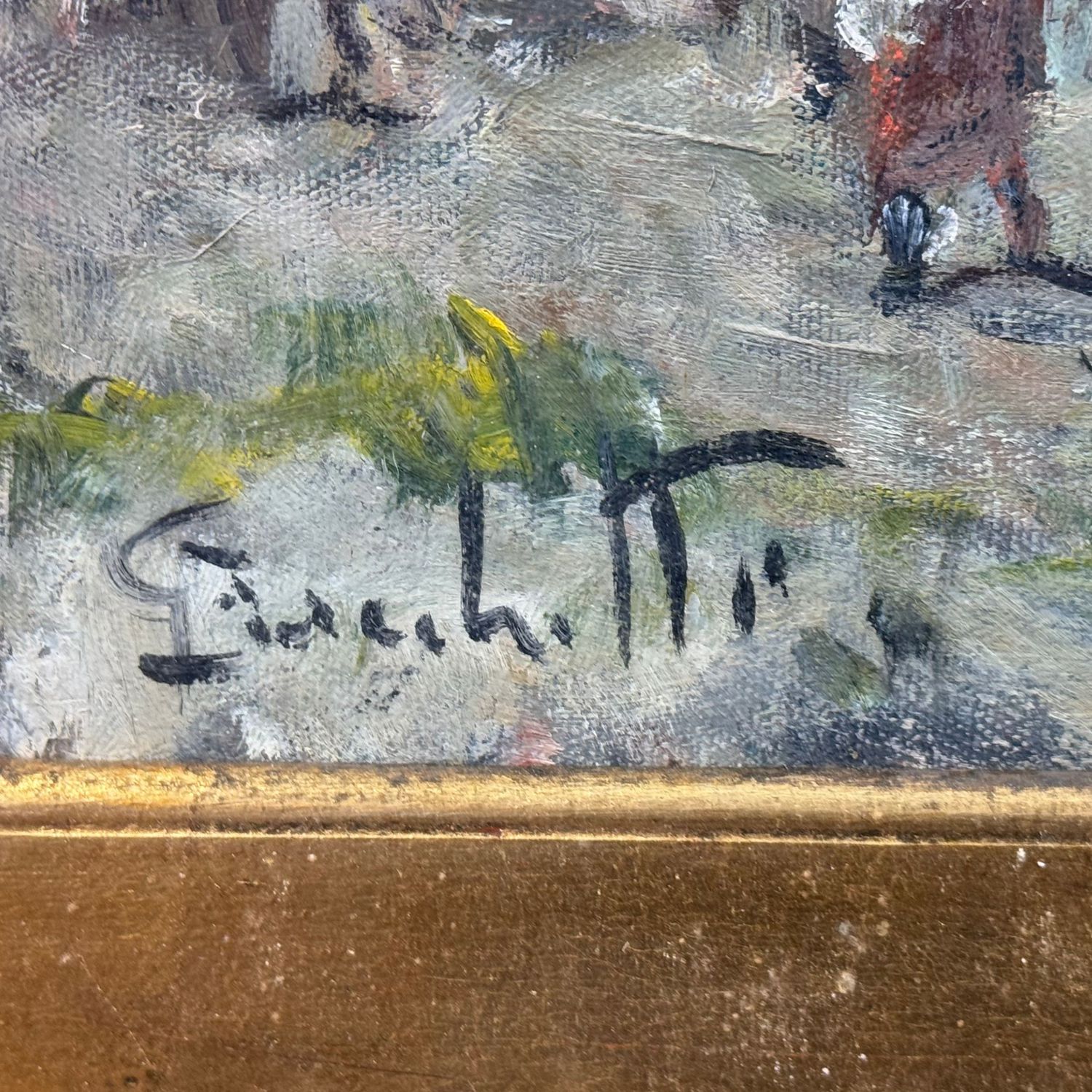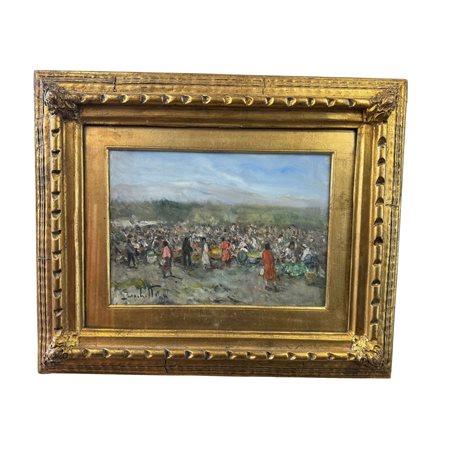 Dipinto olio su tela, periodo XX secolo scuola Italiana, raffigurante scena di mercatino.