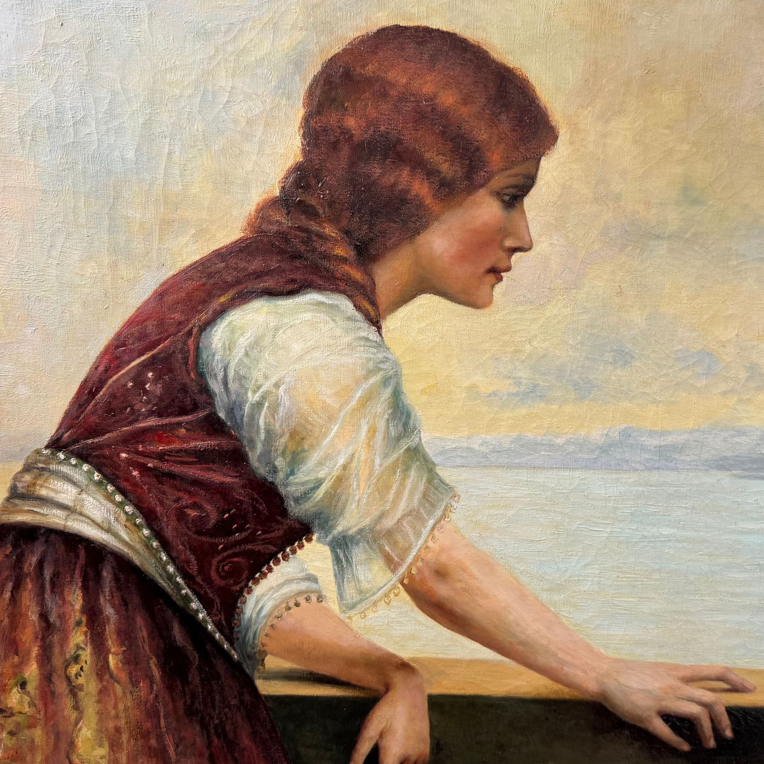 Dipinto olio su tela, periodo XIX/XX secolo scuola Italiana, raffigurante L'attesa alla finestra.