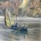 Dipinto guazzo (tempera su carta), periodo XIX secolo scuola Italiana, raffigurante Scorcio di marina napoletana.