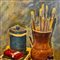 Dipinto olio su pannello, periodo XX secolo scuola Italiana, raffigurante Attrezzi del pittore.