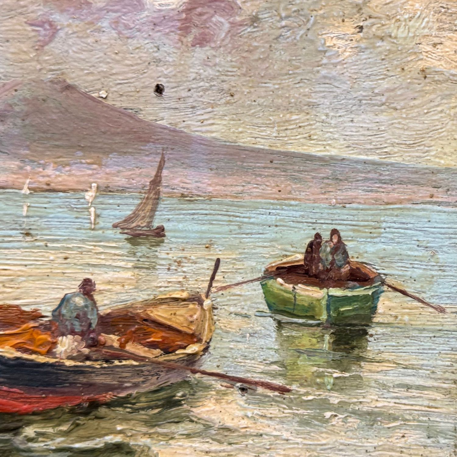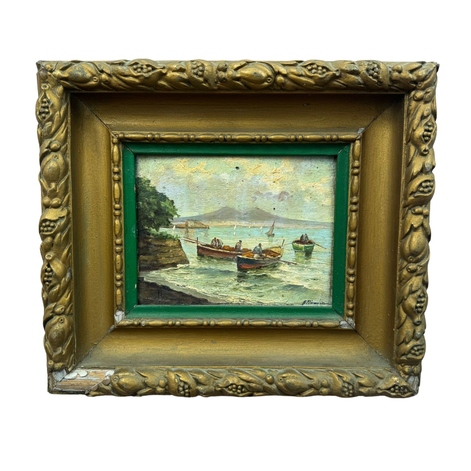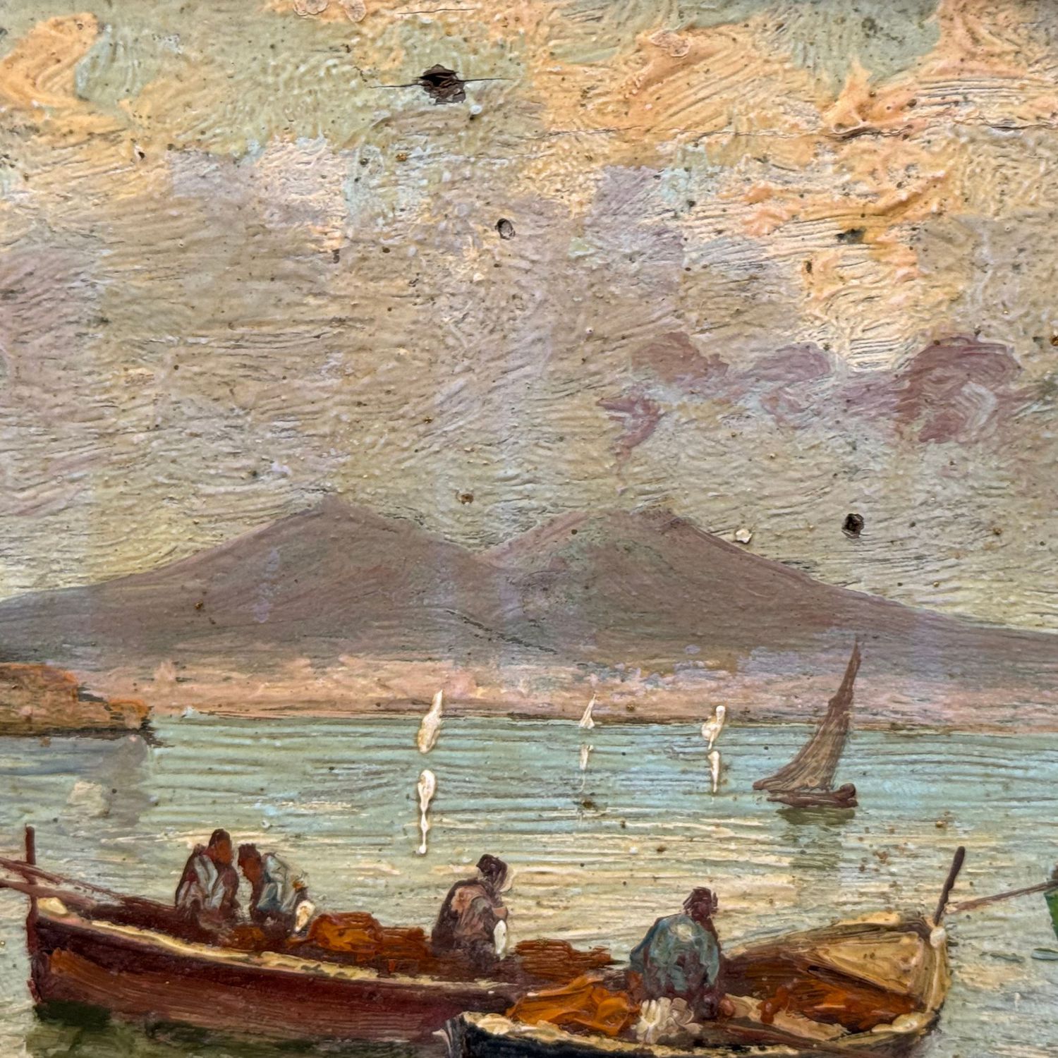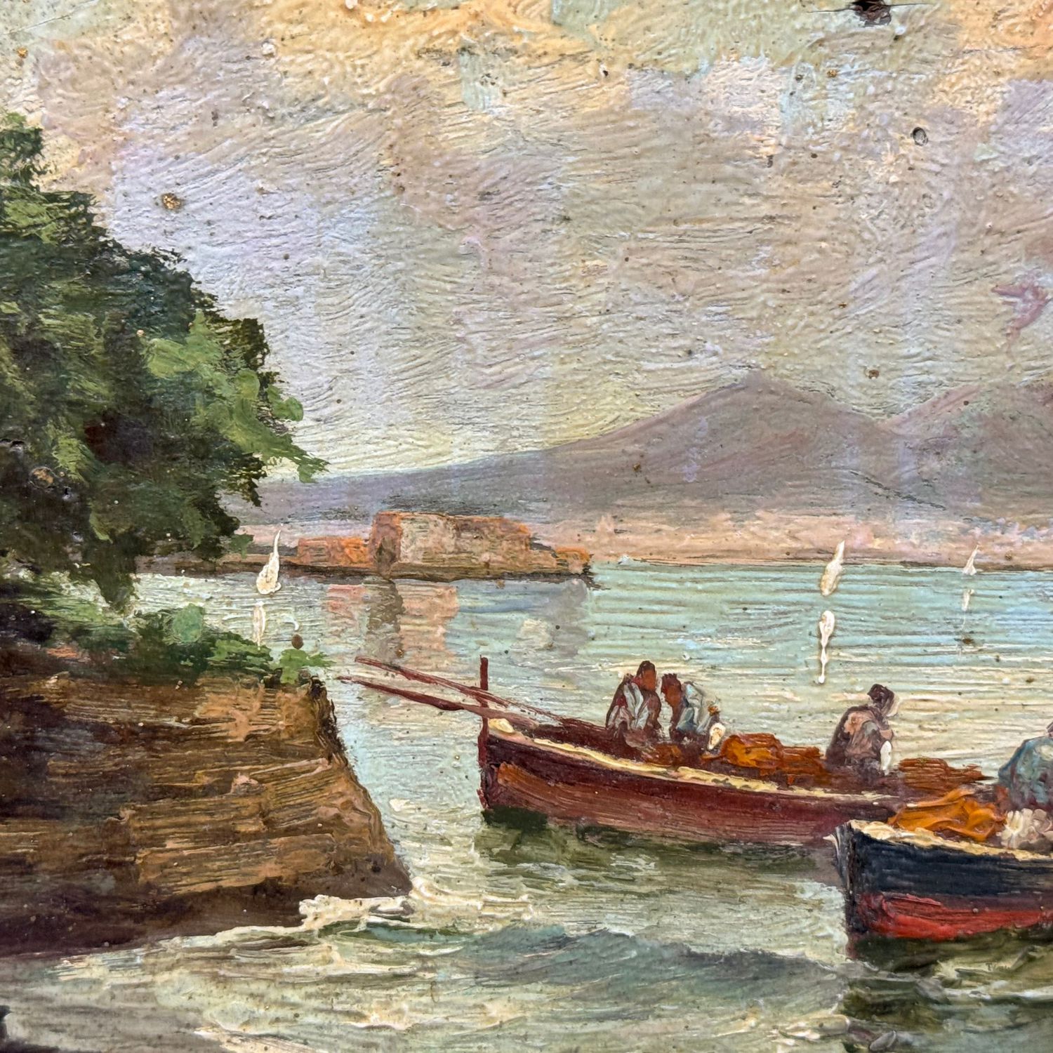 Dipinto olio su tavola, periodo inizio XX secolo scuola Napoletana, raffigurante Golfo di Napoli.