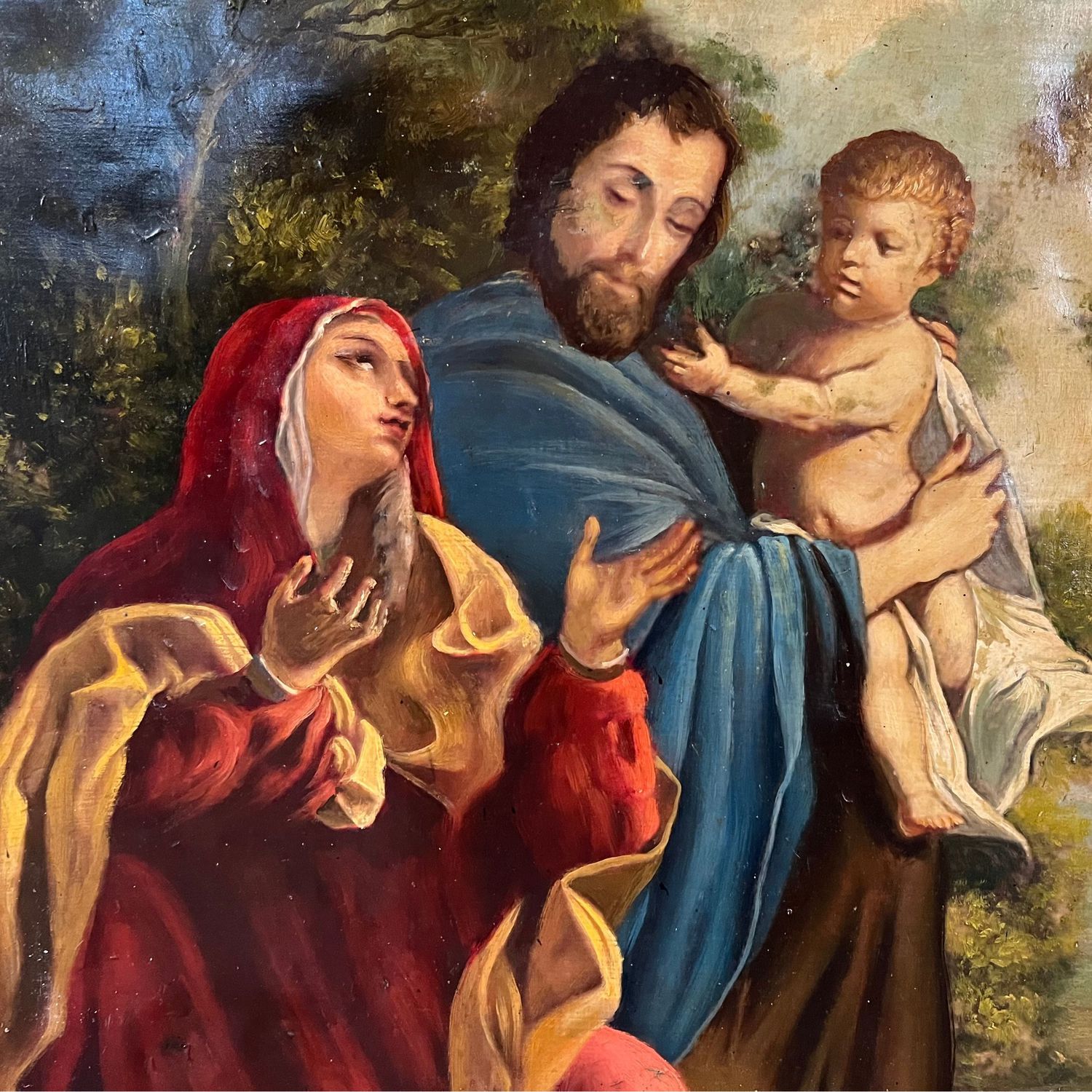 Dipinto olio su rame, periodo XVIII/XIX secolo raffigurante La Sacra Famiglia.