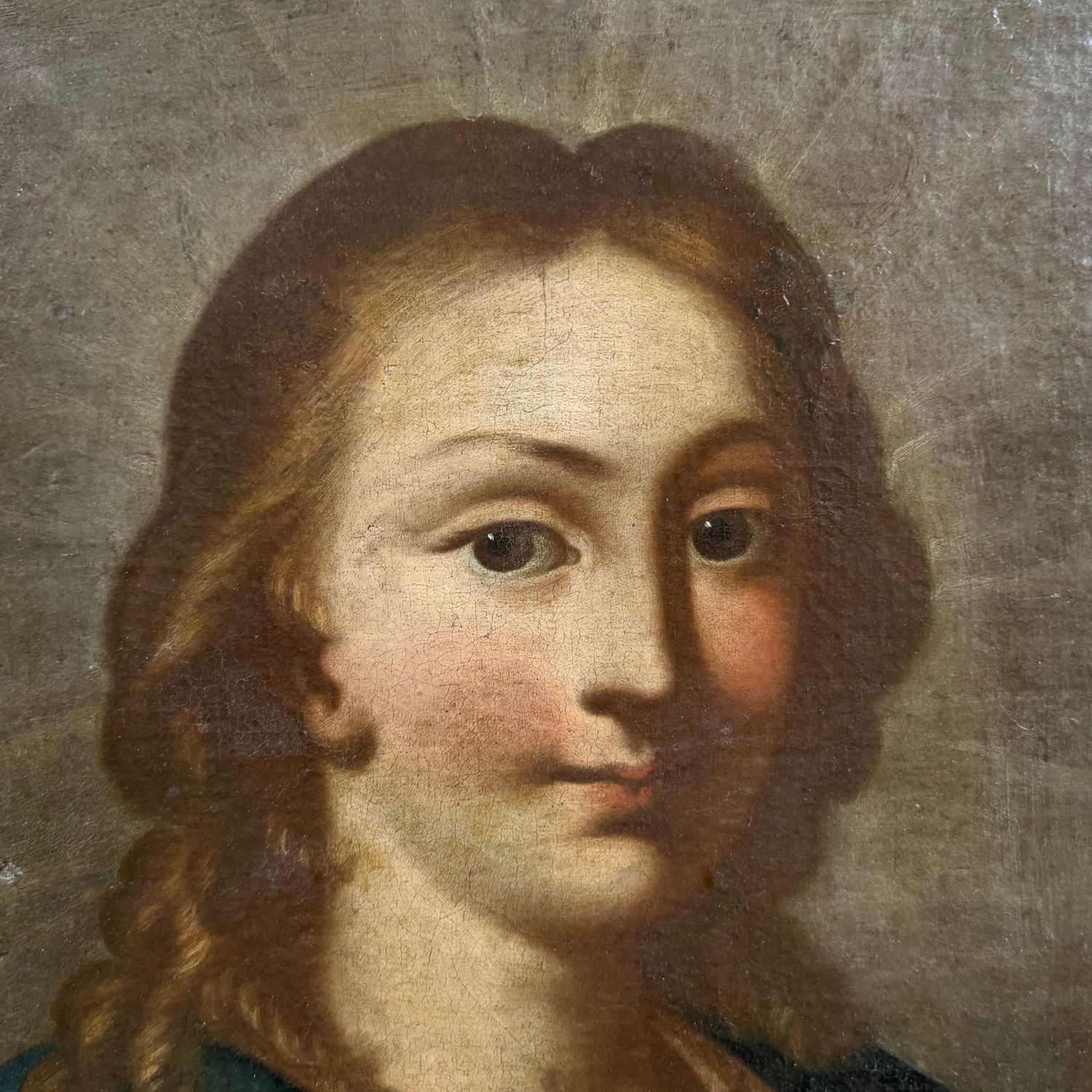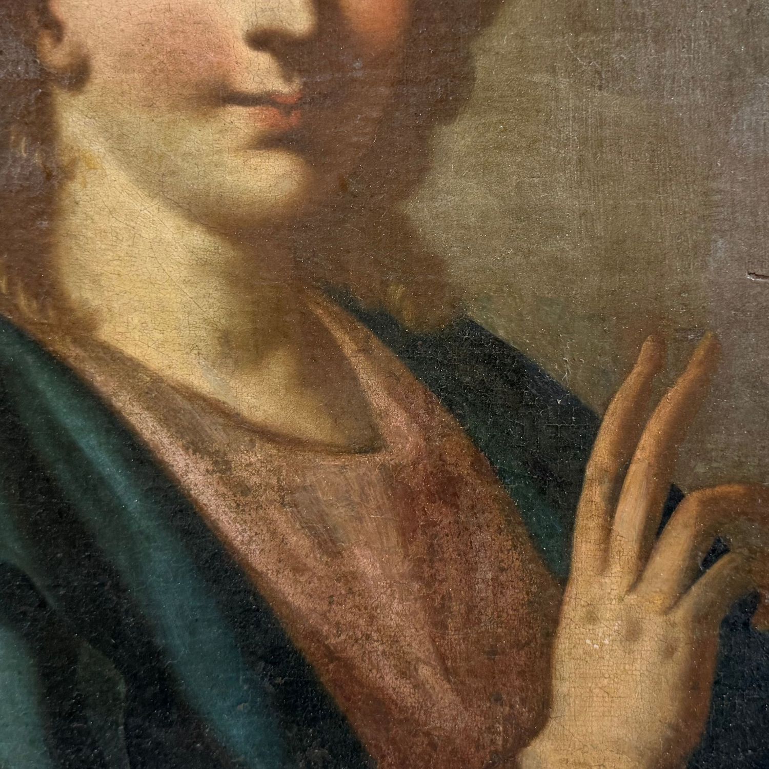 Dipinto olio su tela, periodo XVIII secolo ambito De Mura, scuola Italiana raffigurante Cristo benedicente.