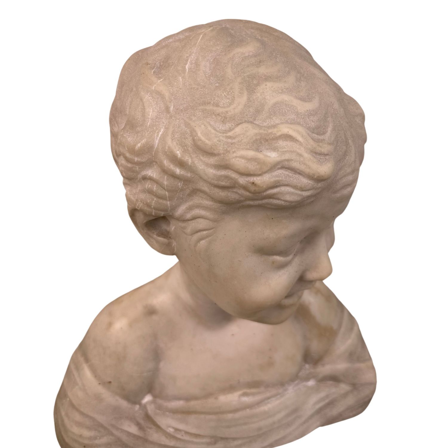Busto in marmo bianco, periodo XIX secolo raffigurante Bambino sorridente.