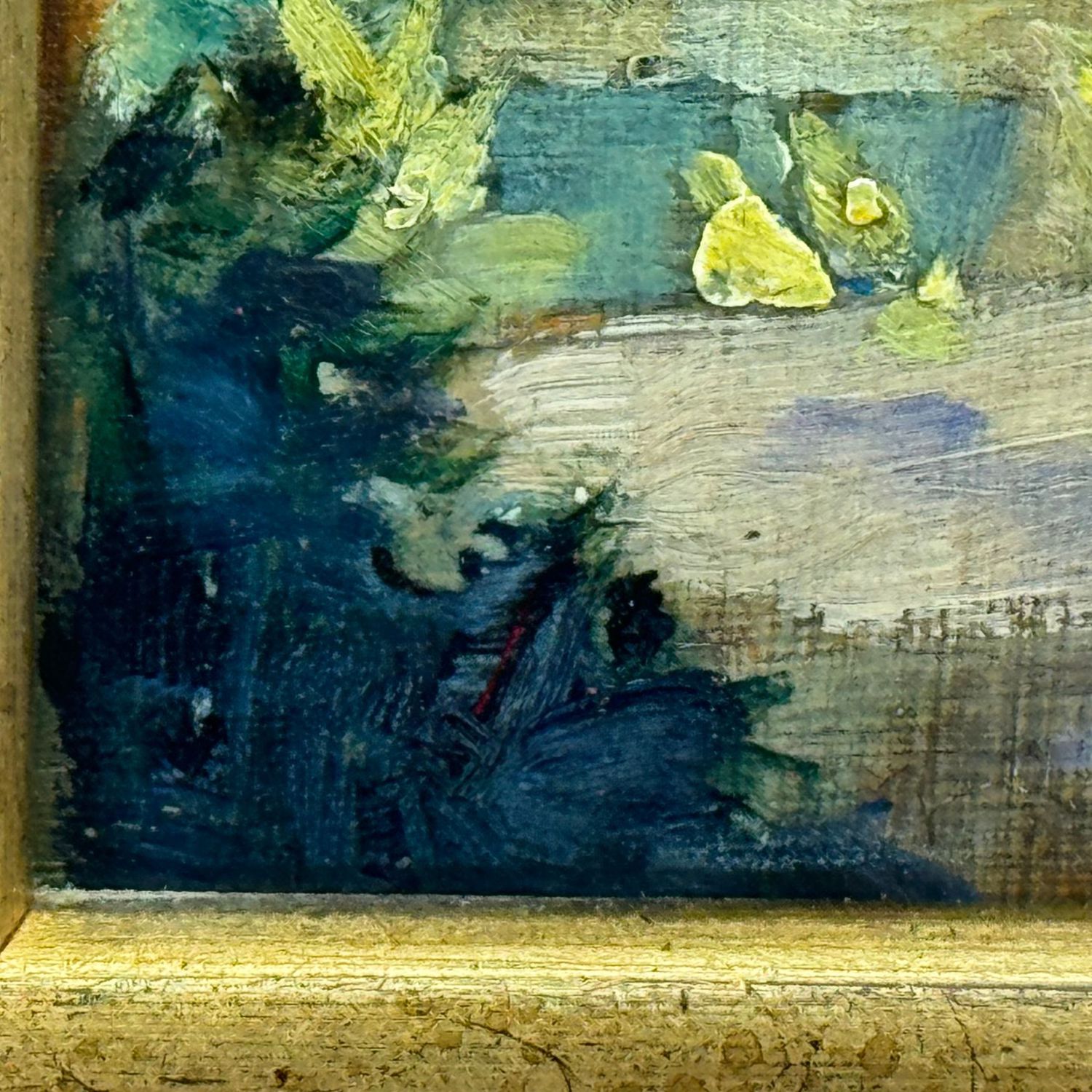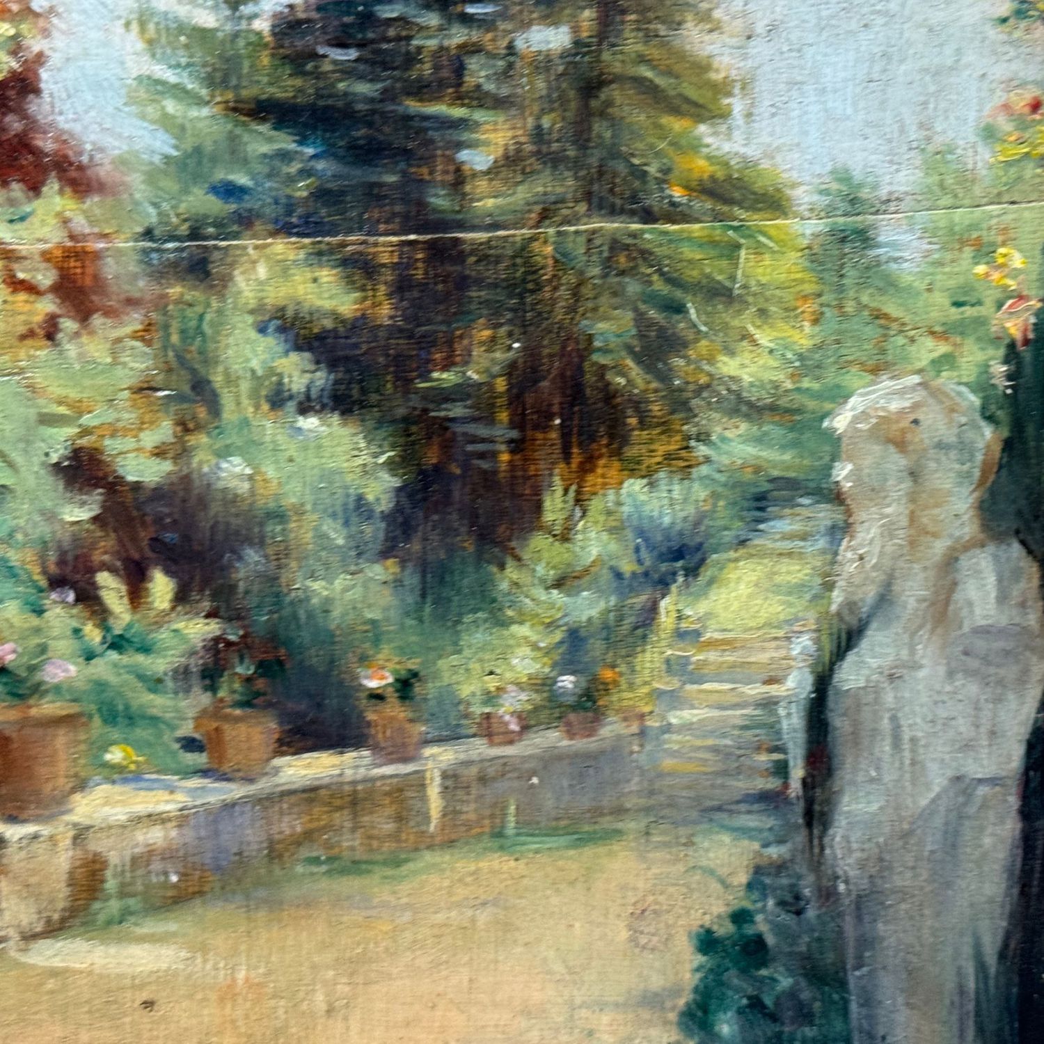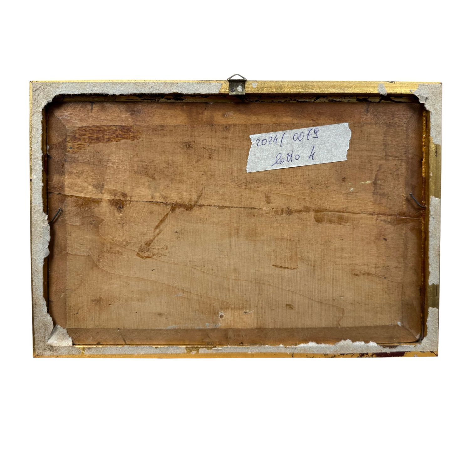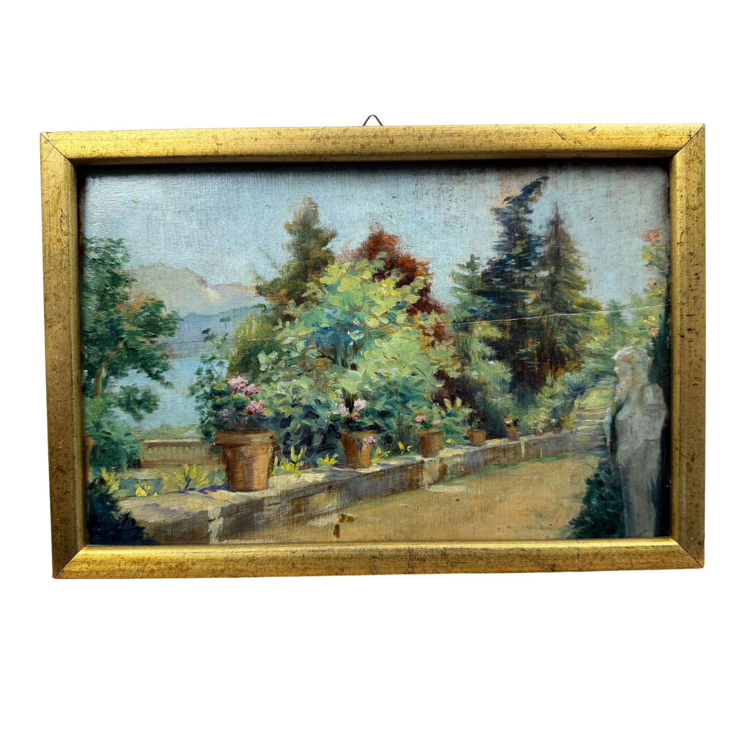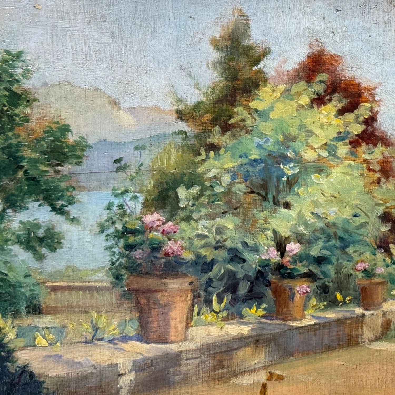 Dipinto olio su tavola, periodo inizio XX secolo scuola Napoletana, raffigurante Terrazza a Sorrento.