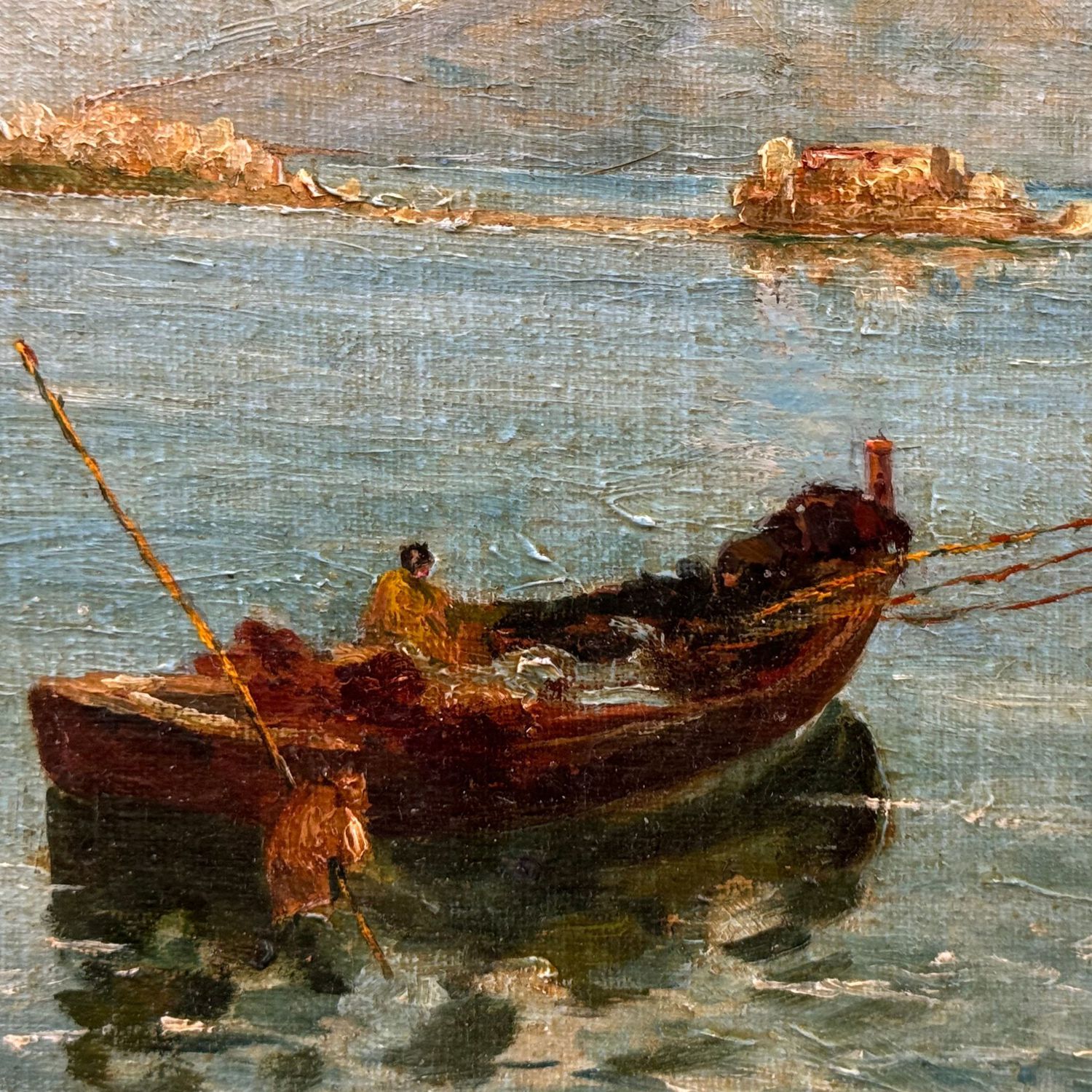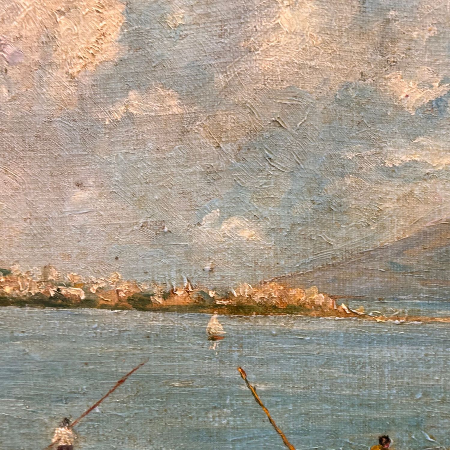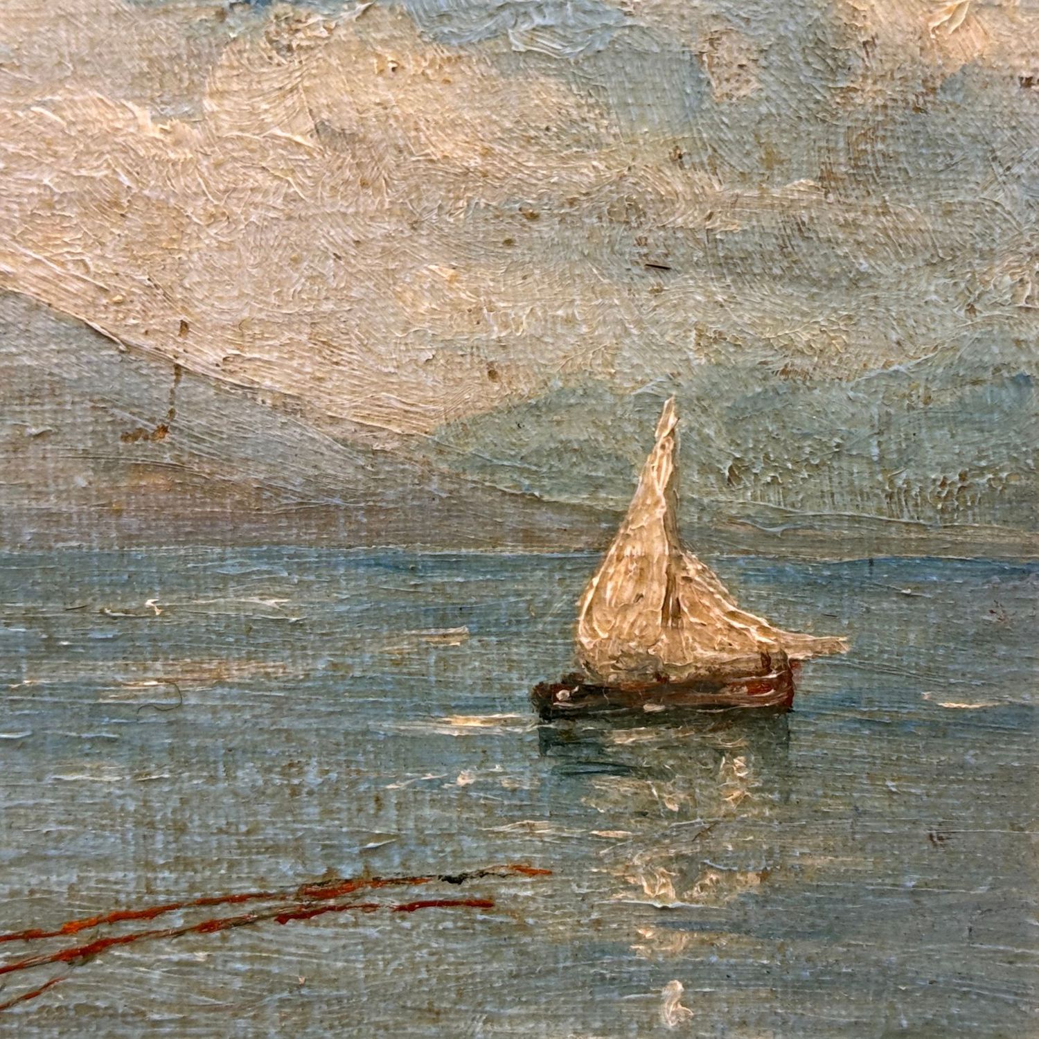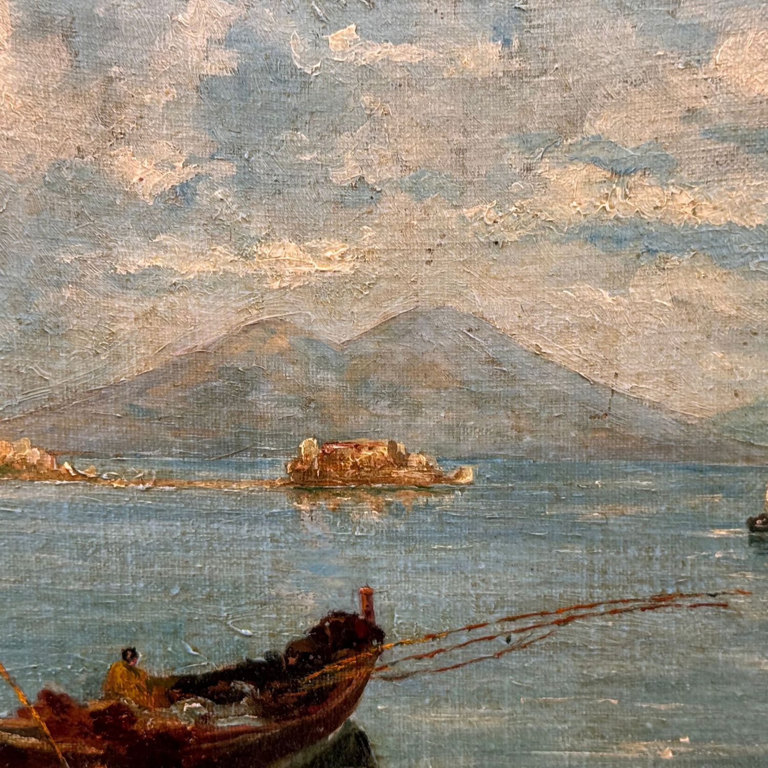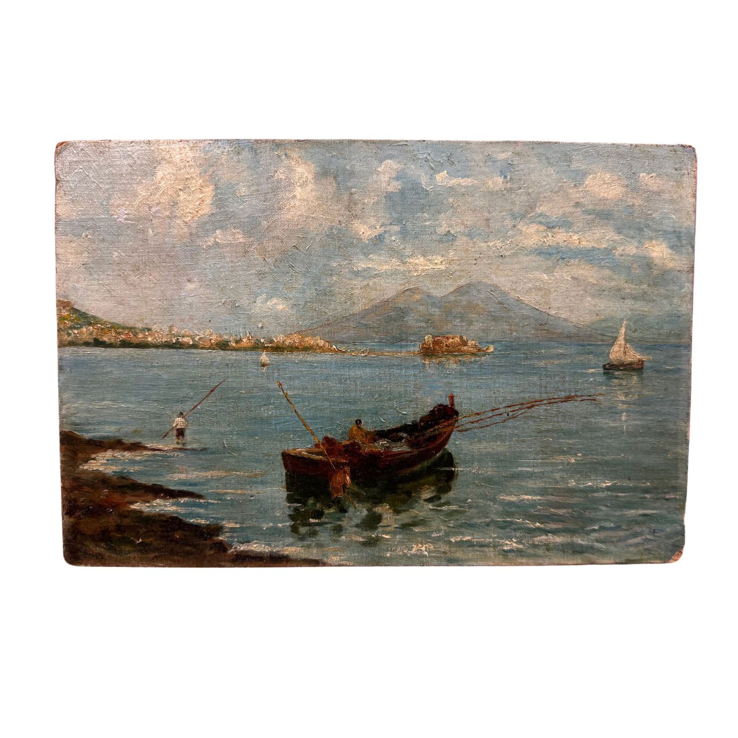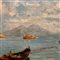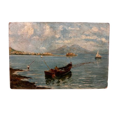 Dipinto olio su tela applicata su cartoncino, periodo inizio XX secolo scuola Napoletana, raffigurante Golfo di Napoli.