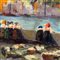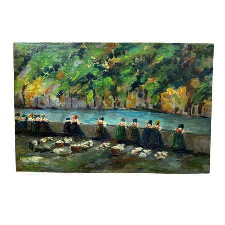 Dipinto olio su carta applicata su tela, periodo inizio XX secolo scuola Italiana, raffigurante Le lavandaie.