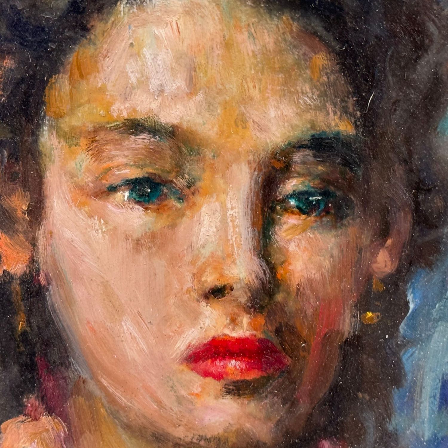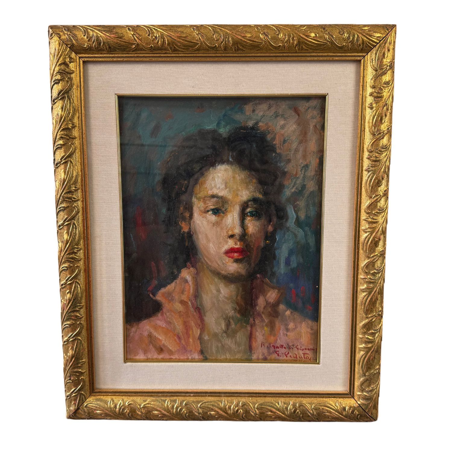 Dipinto olio su cartoncino, periodo XX secolo scuola Italiana, raffigurante Ritratto di giovane.