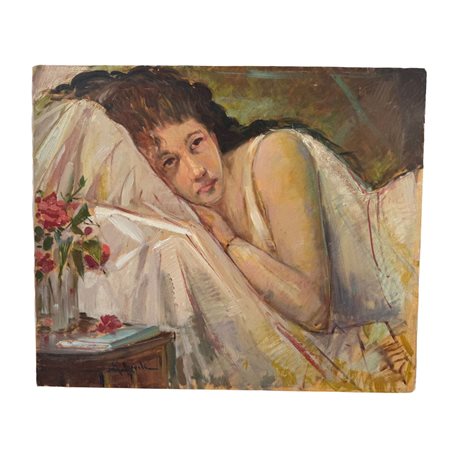 Dipinto olio su tela, periodo XX secolo scuola Italiana, raffigurante Ritratto di donna.