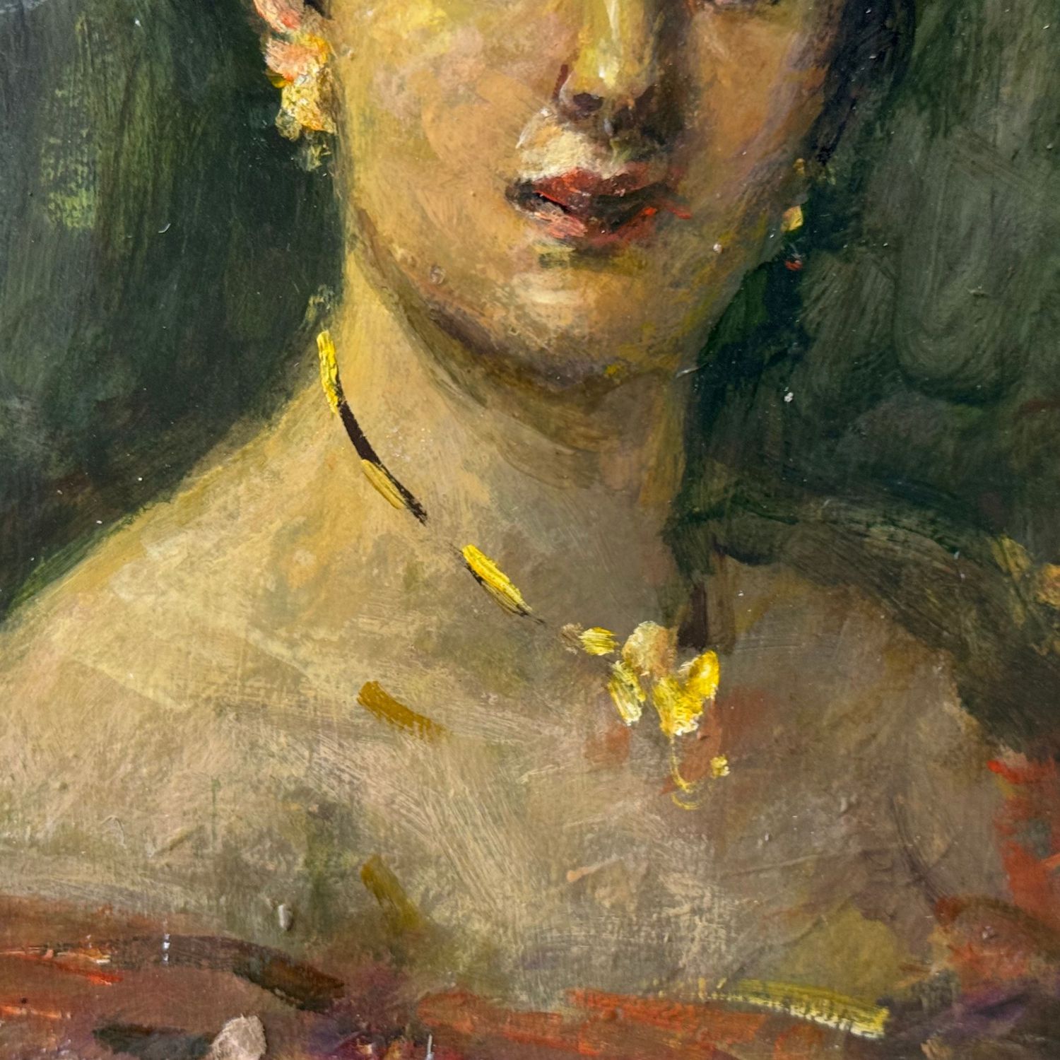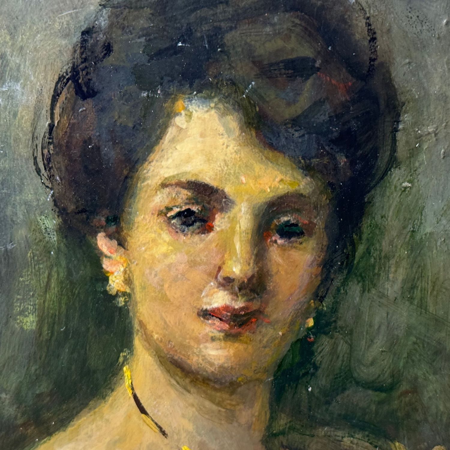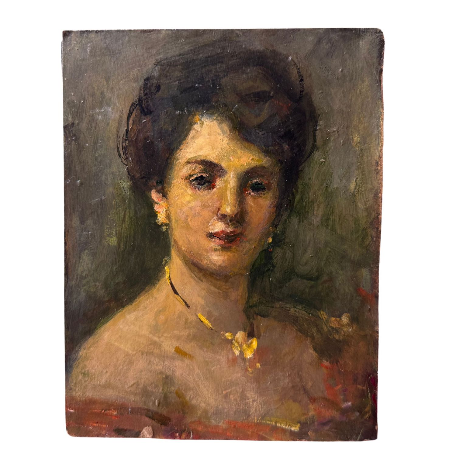 Dipinto olio su cartoncino, periodo XIX/XX secolo scuola Italiana, raffigurante Ritratto di donna.