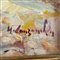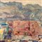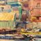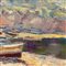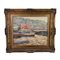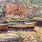 Dipinto olio su tela, periodo XX secolo scuola italiana, raffigurante Paesaggio marino con barche a secco.