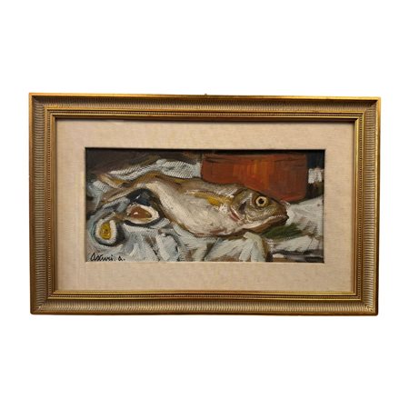 Dipinto olio su cartoncino, periodo XX secolo scuola Italiana, raffigurante Natura morta.