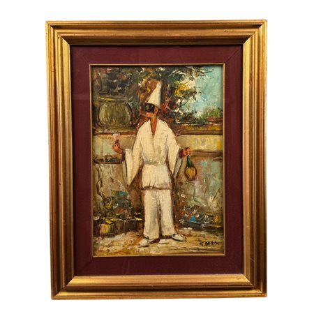 Dipinto olio su tela, periodo XX secolo scuola Italiana, raffigurante Pulcinella.