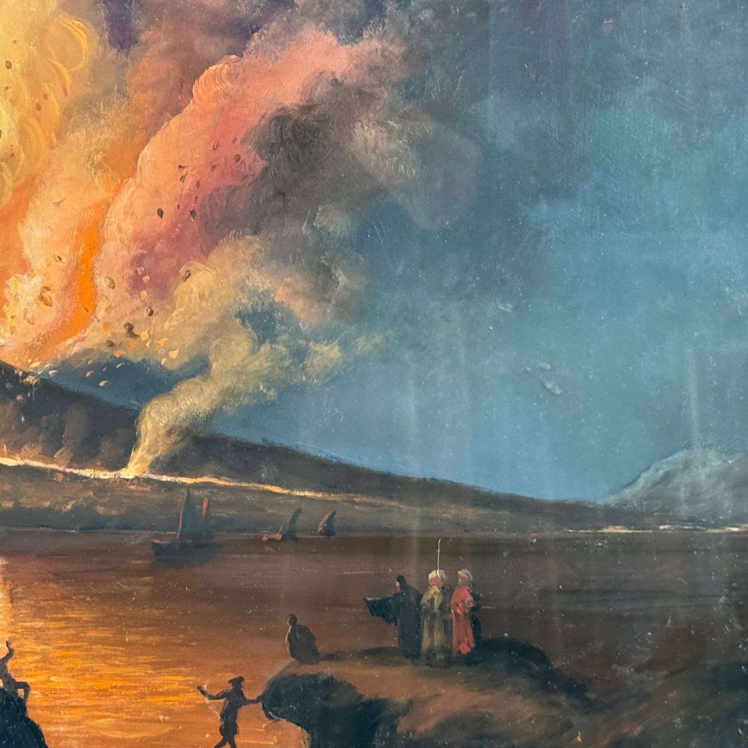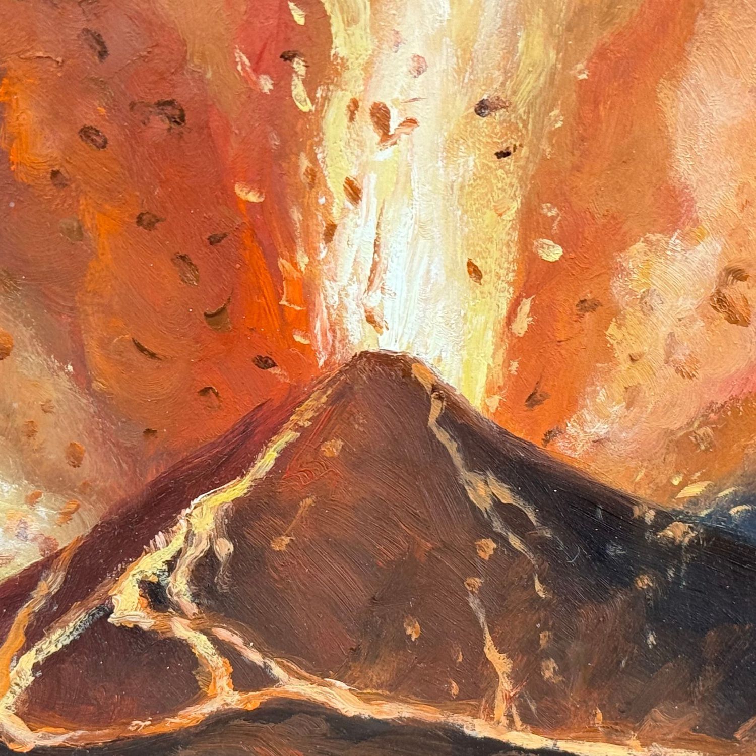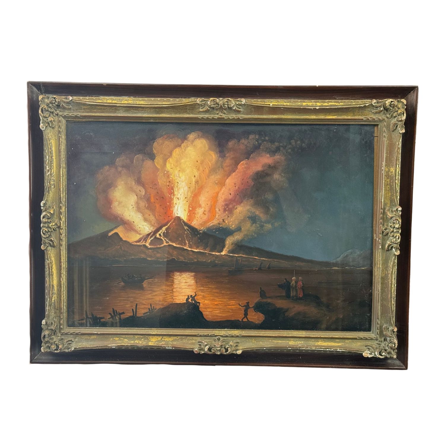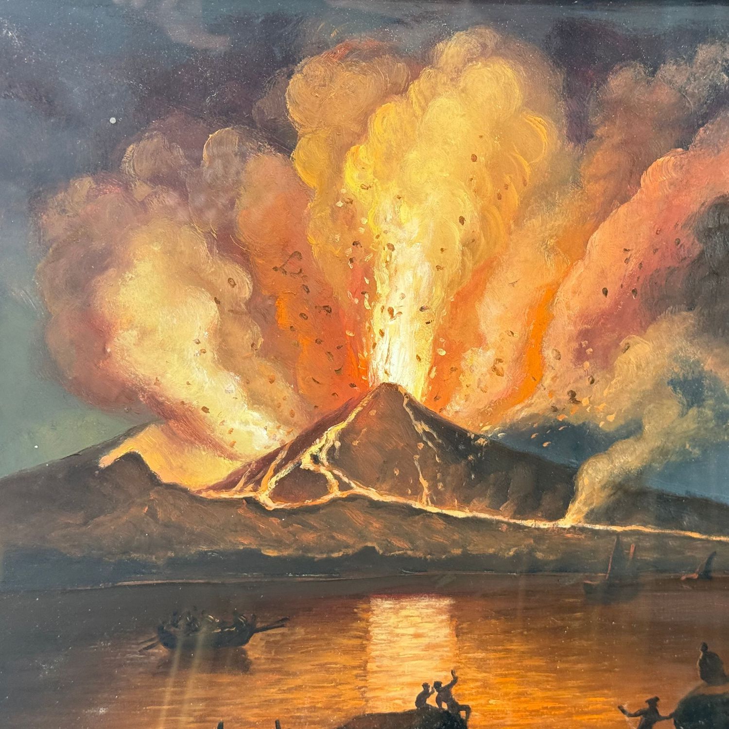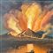 Dipinto olio su carta, periodo XIX/XX secolo scuola Italiana, raffigurante Eruzione del Vesuvio.