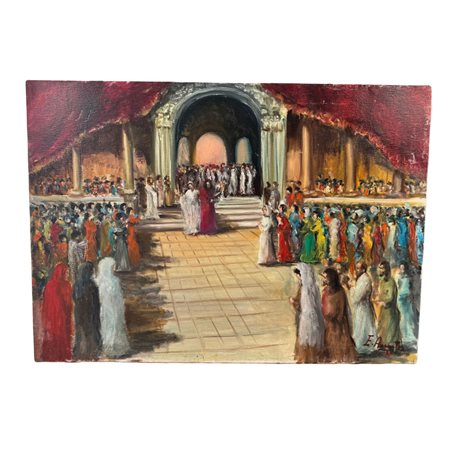 Dipinto olio su tela, periodo XX secolo scuola Italiana, raffigurante "Ecco l'uomo"