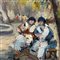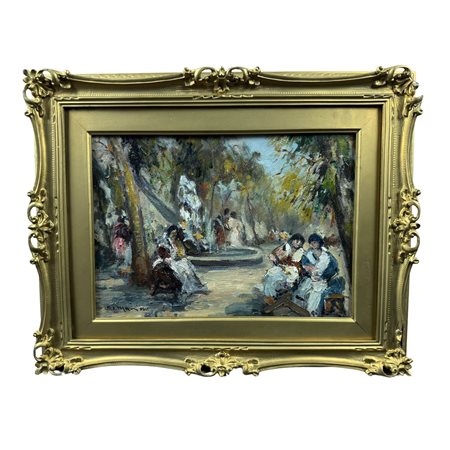 Dipinto olio su tavola, periodo XX secolo scuola Italiana, raffigurante Personaggi.