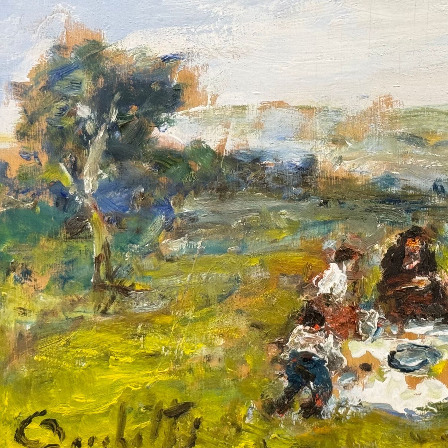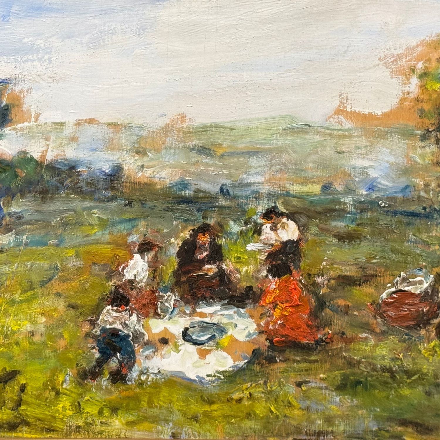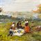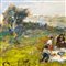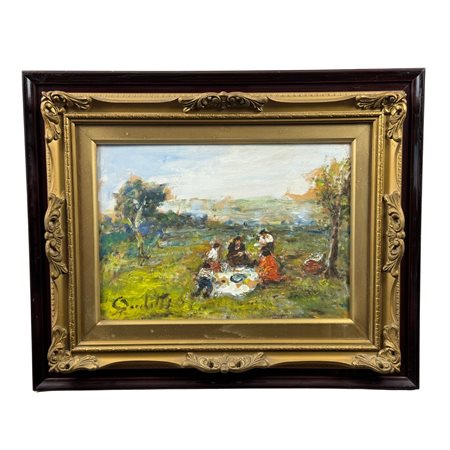 Dipinto olio su tavola, periodo XX secolo scuola italiana, raffigurante "La scampagnata"