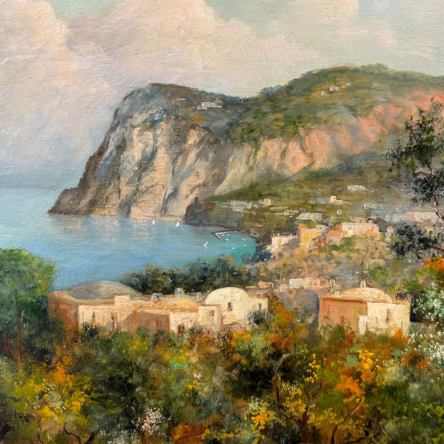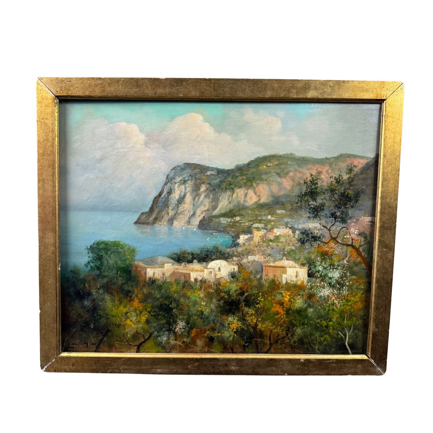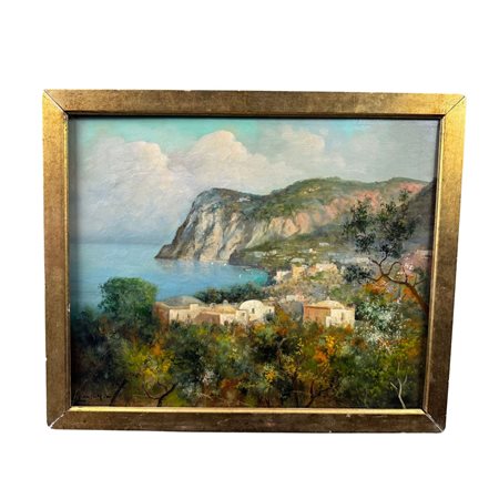 Dipinto olio su tela, periodo XX secolo scuola Italiana, raffigurante Marina di Costiera.