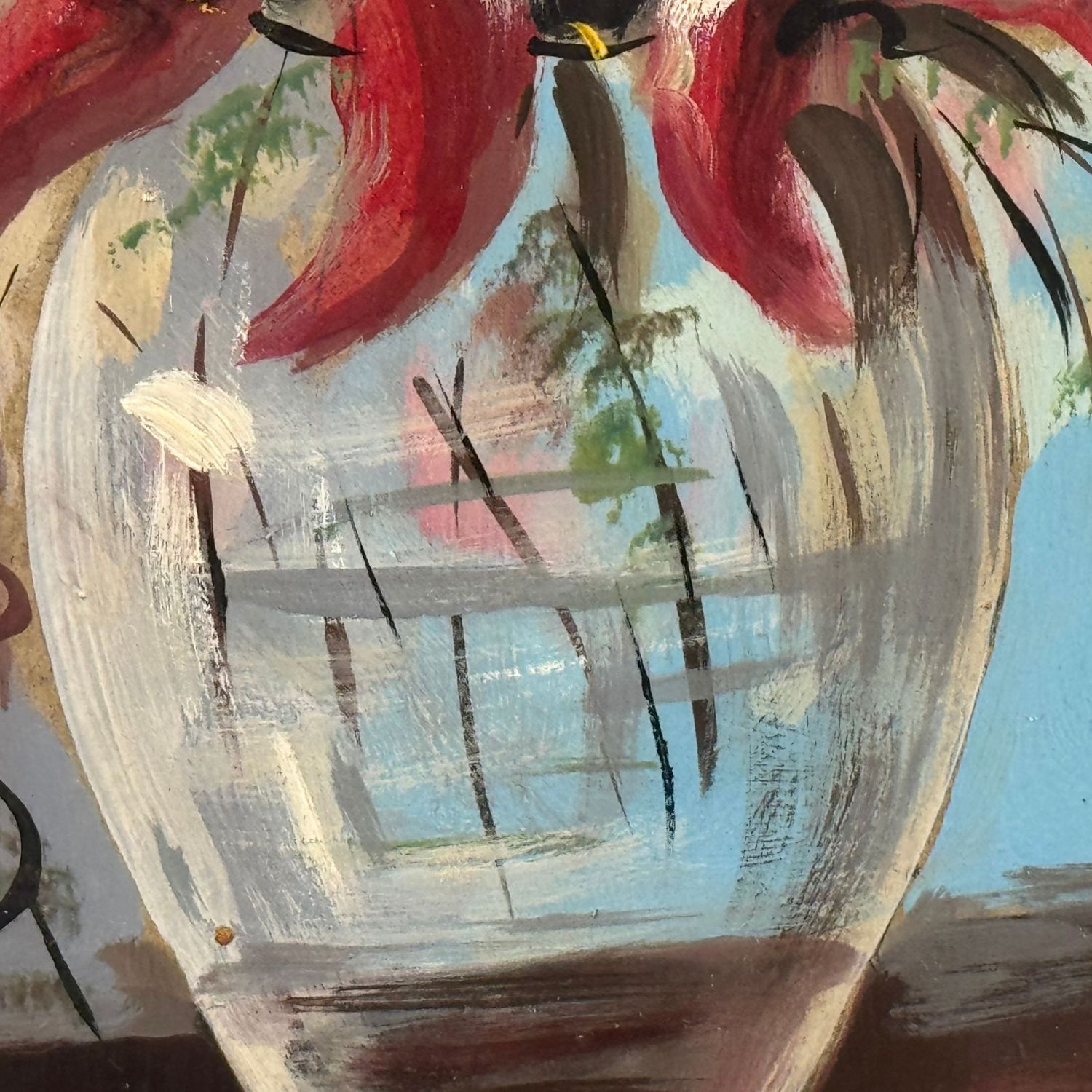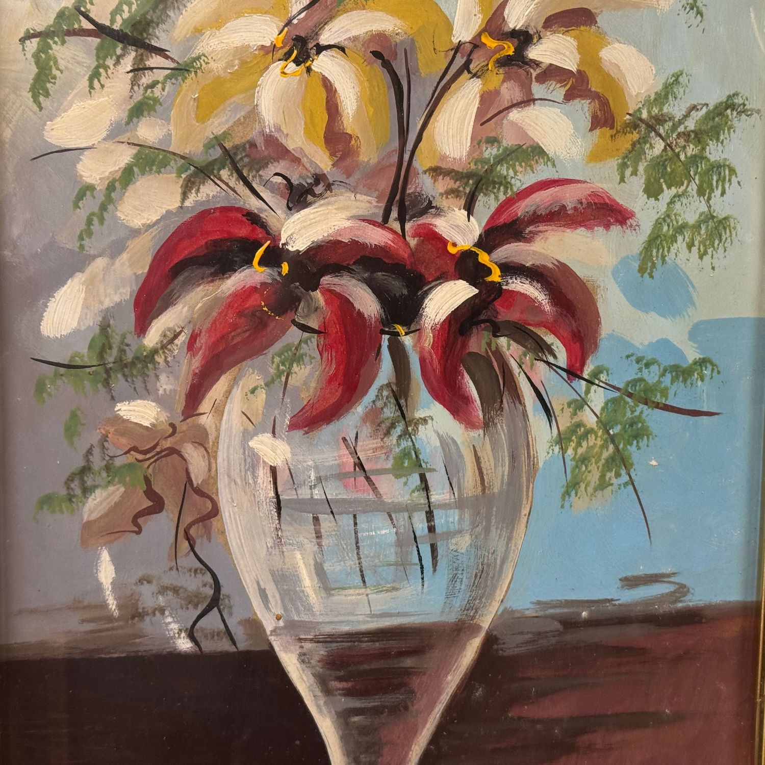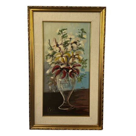 Dipinto olio su cartoncino, periodo XX secolo scuola Italiana, raffigurante Vaso con fiori.