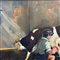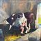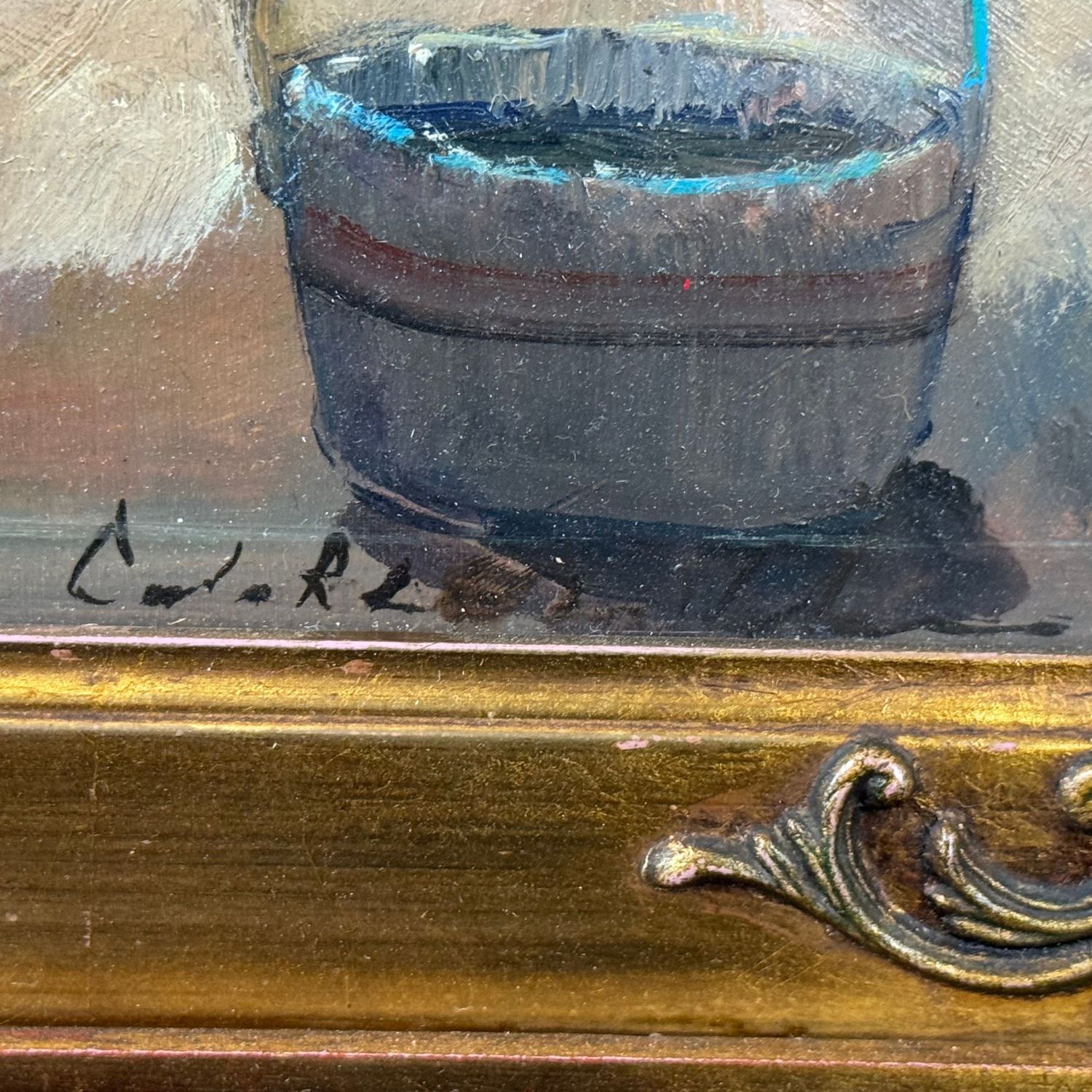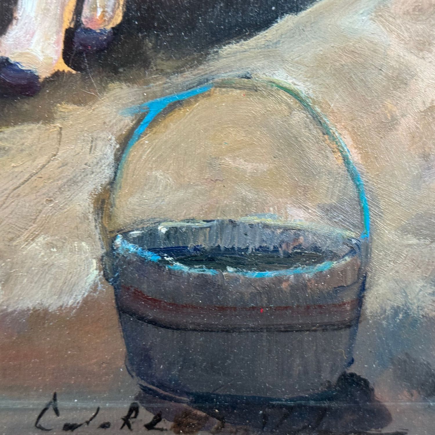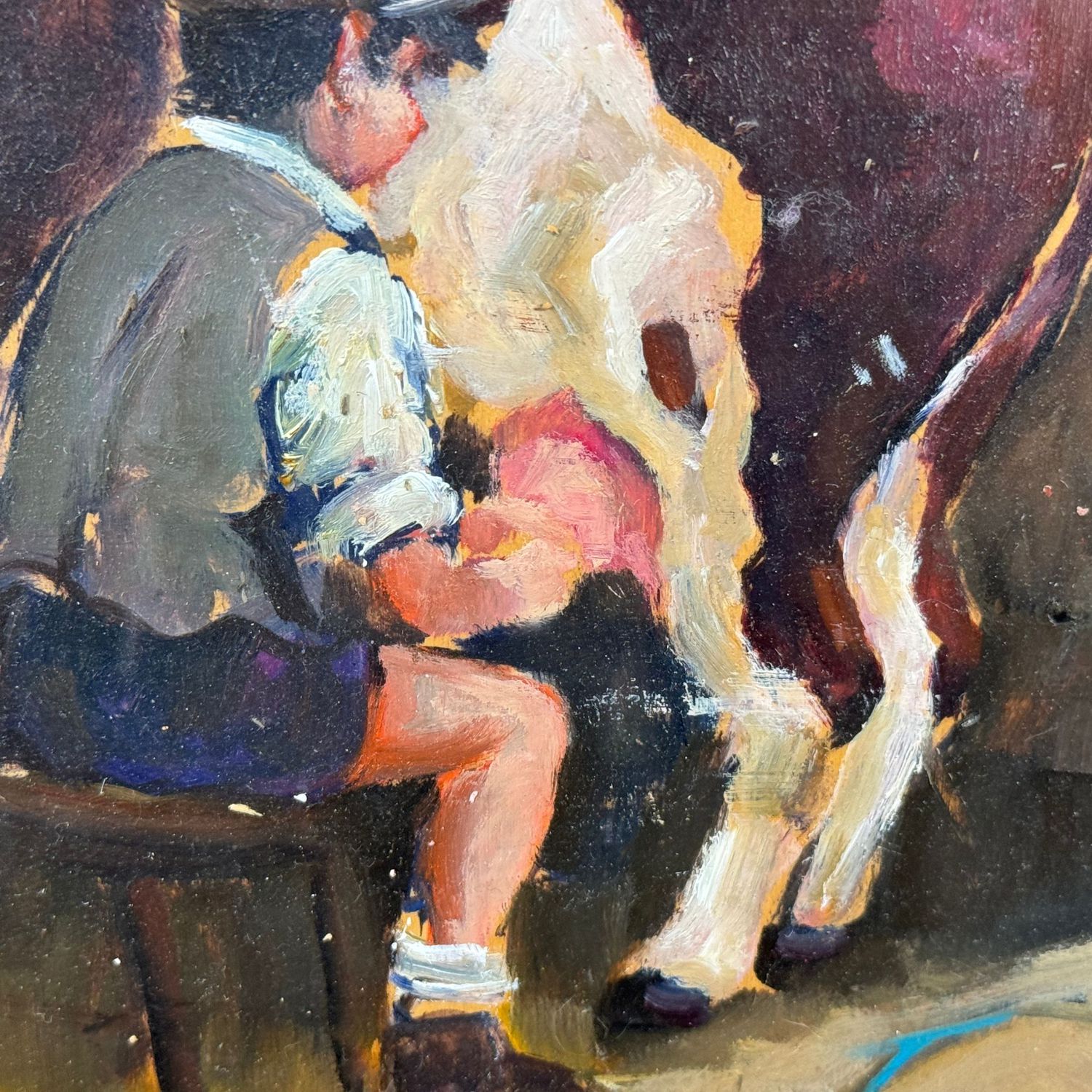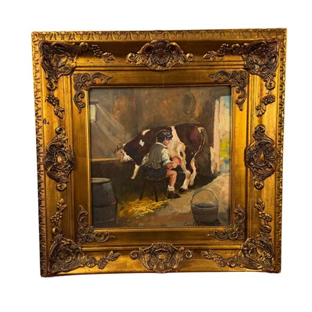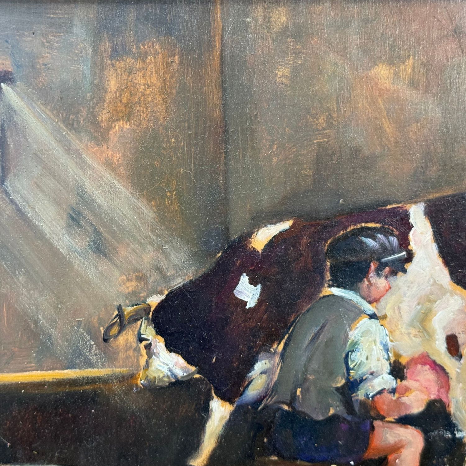 Dipinto olio su tavola, periodo XX secolo scuola Italiana, raffigurante "La mungitura".
