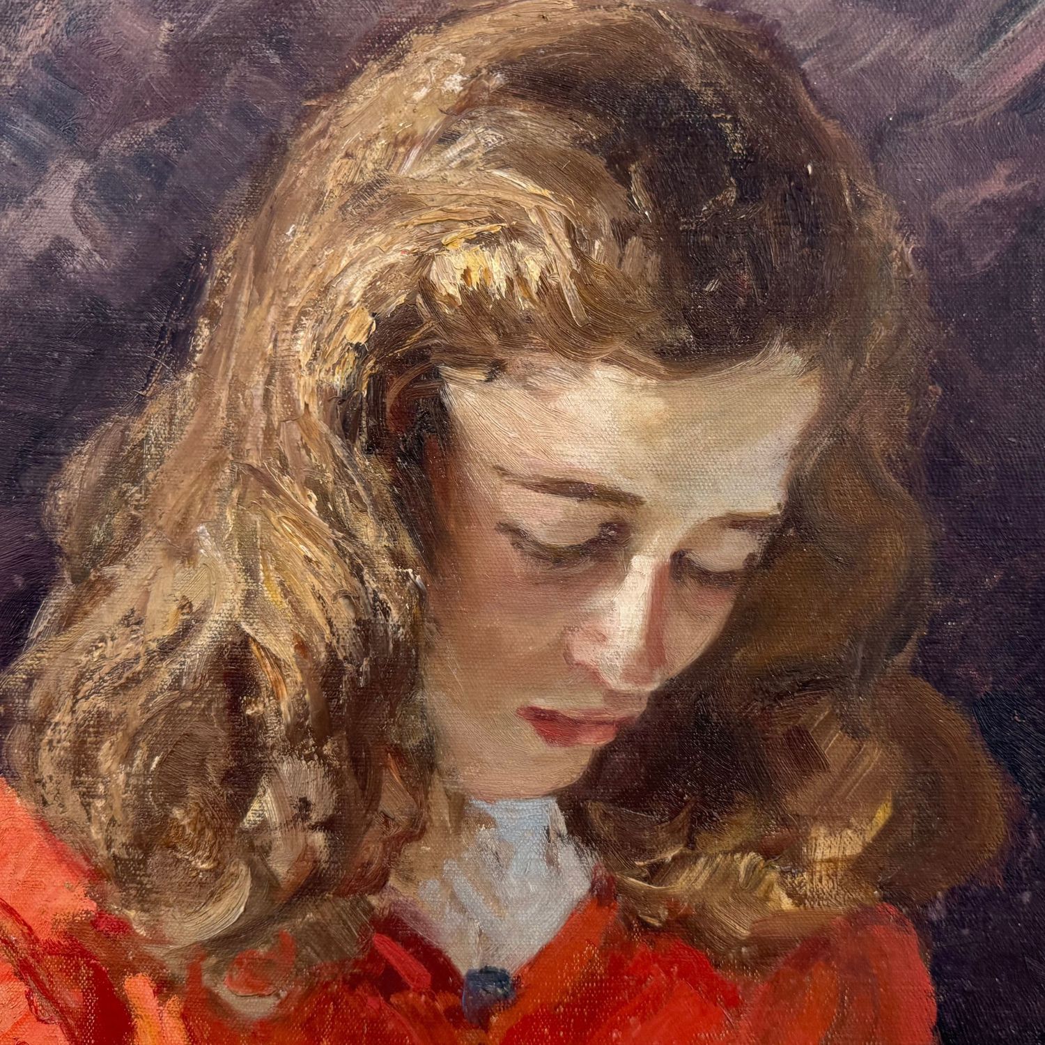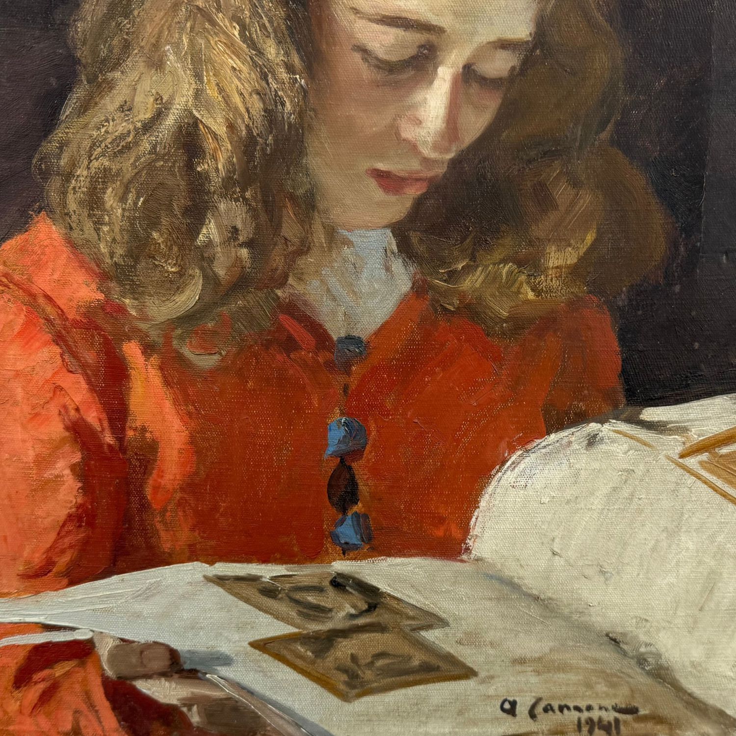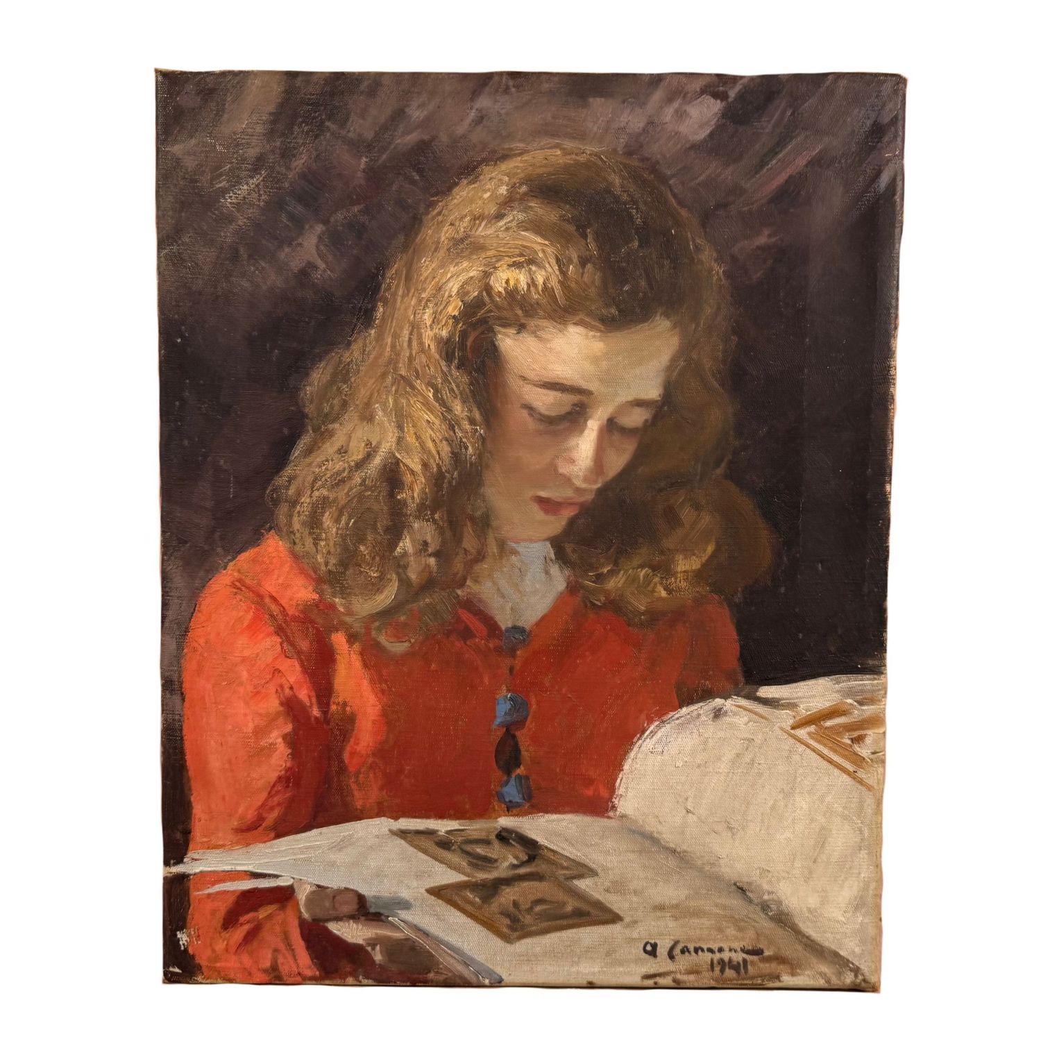 Dipinto olio su tela, periodo prima metà del XX secolo scuola Italiana, raffigurante Donna in lettura.