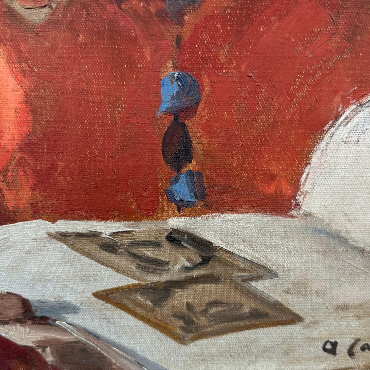 Firmato in basso a destra, firma in difficile lettura.