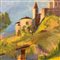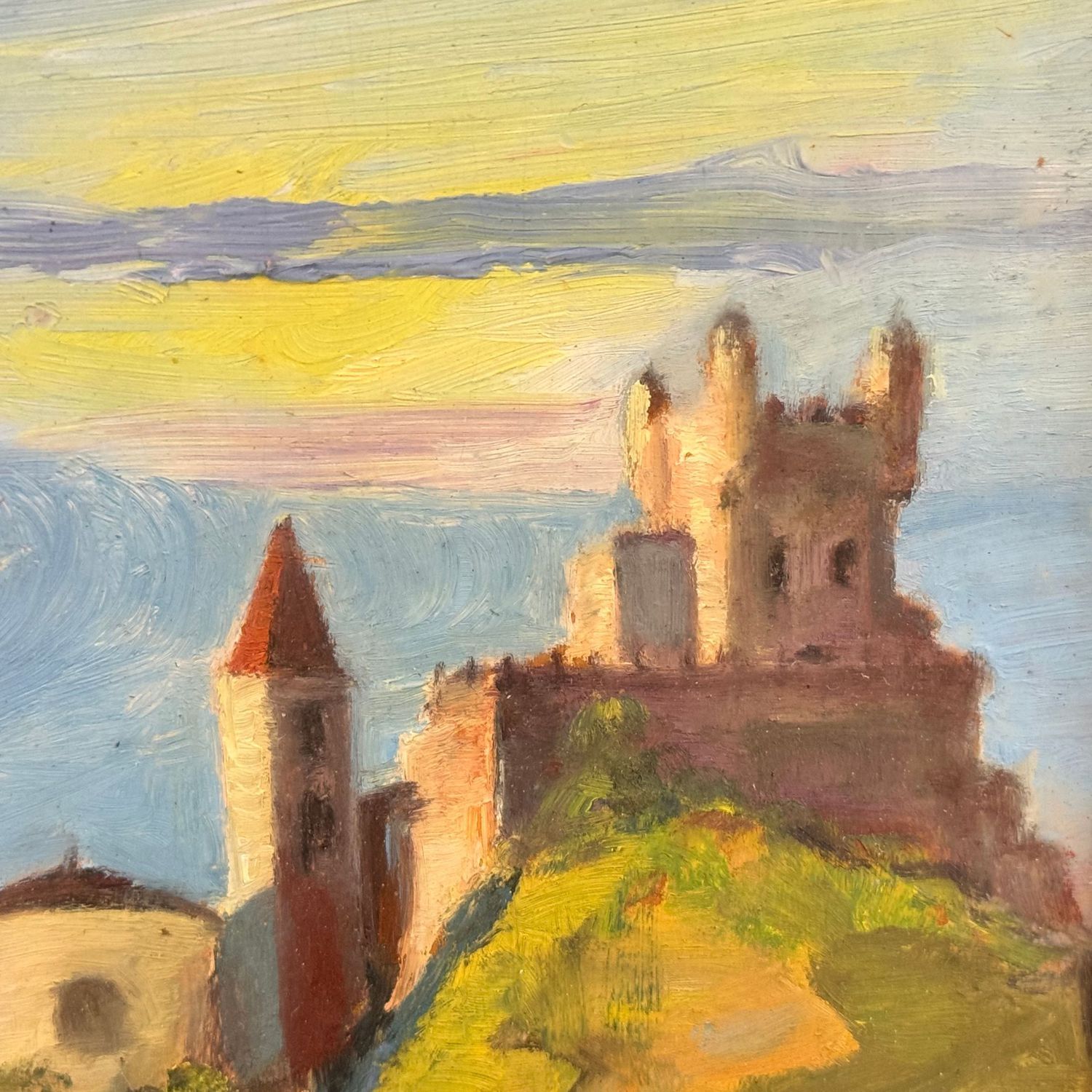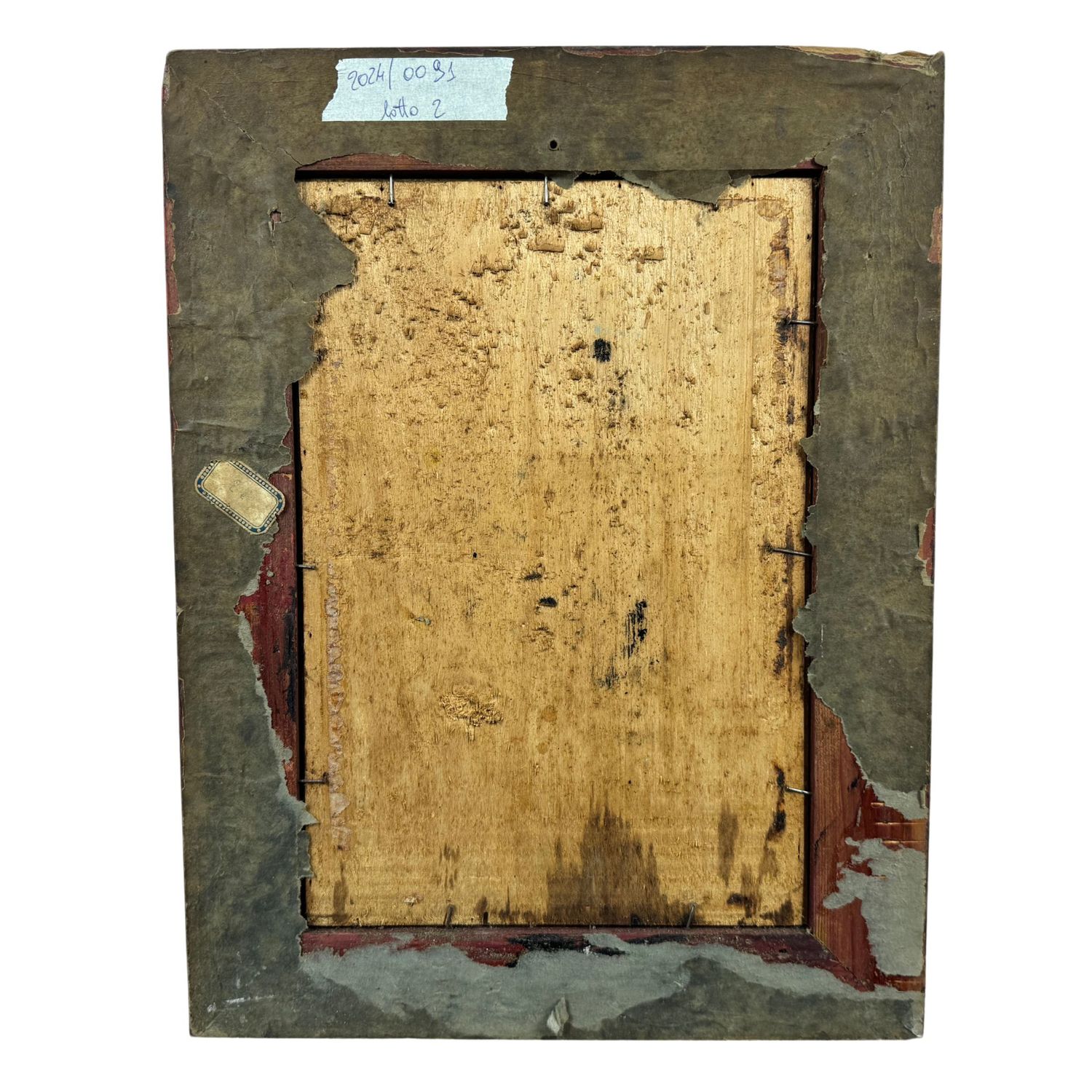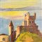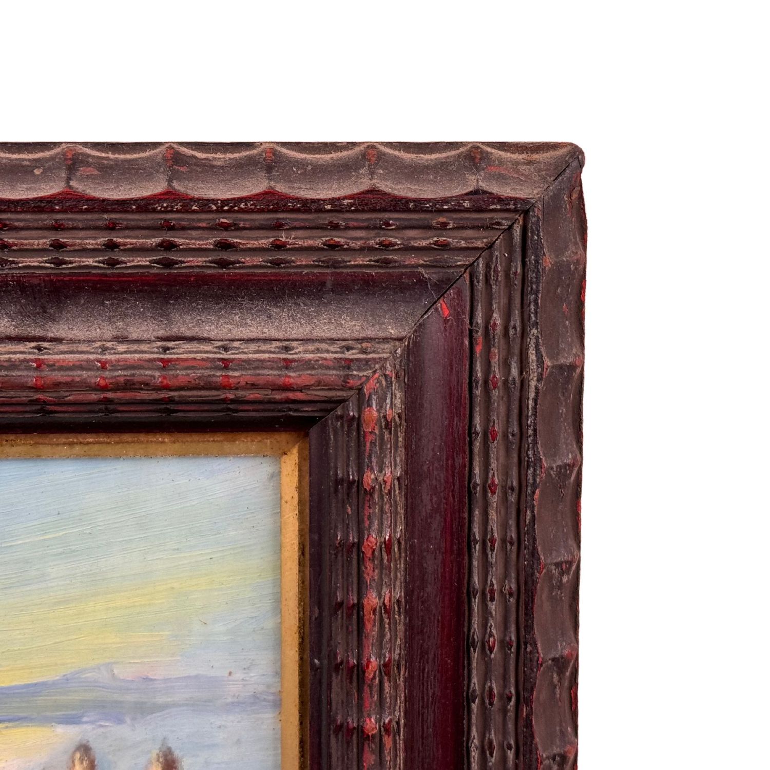 Dipinto olio su tavola, periodo XIX/XX secolo scuola Italiana, raffigurante Paesaggio con campanile.