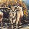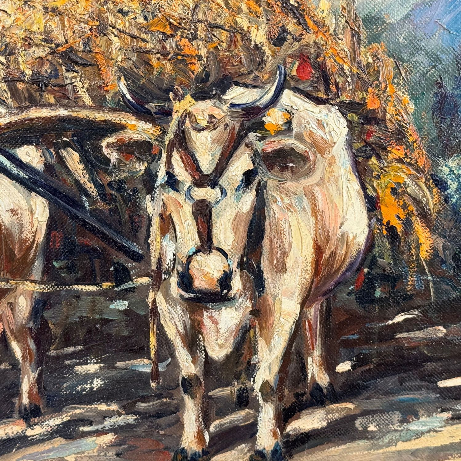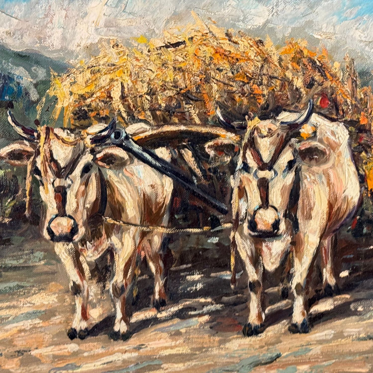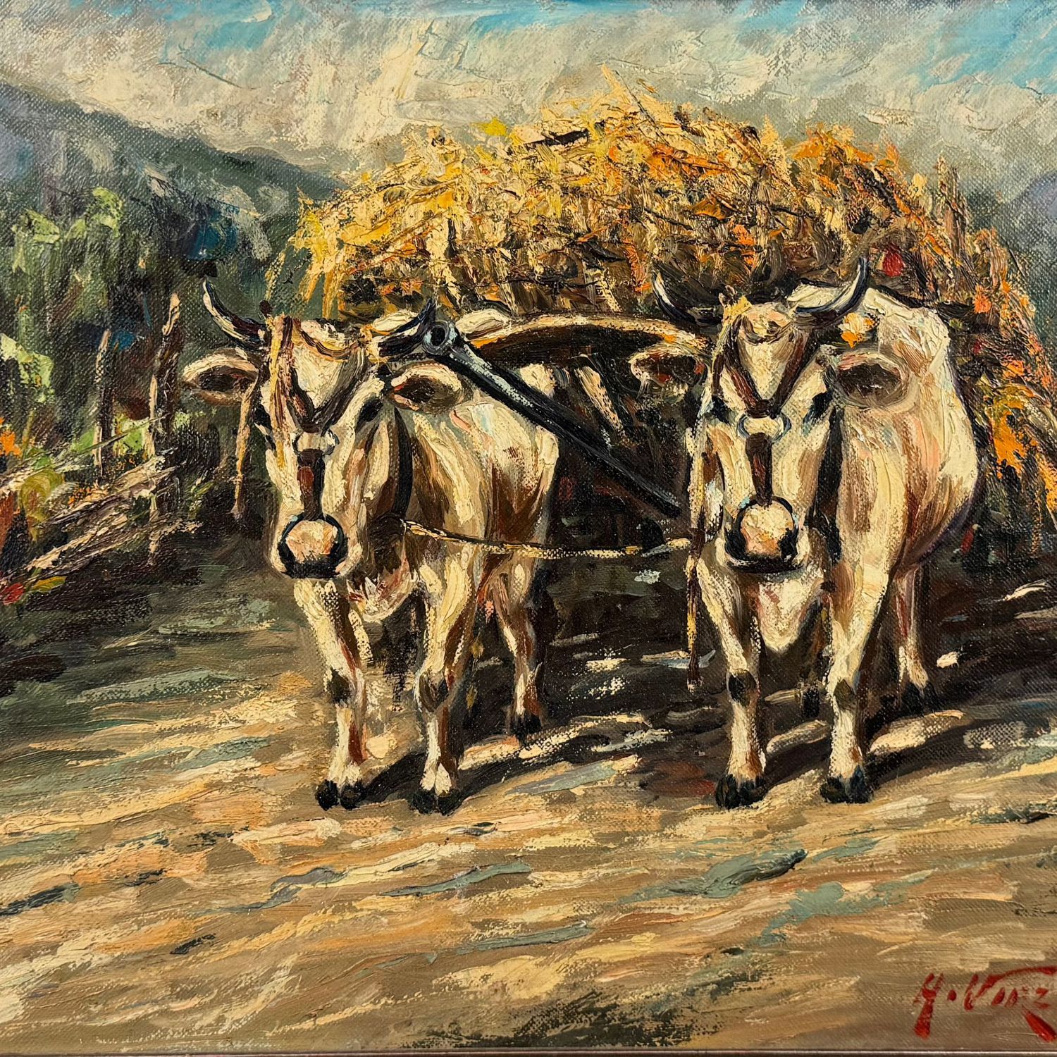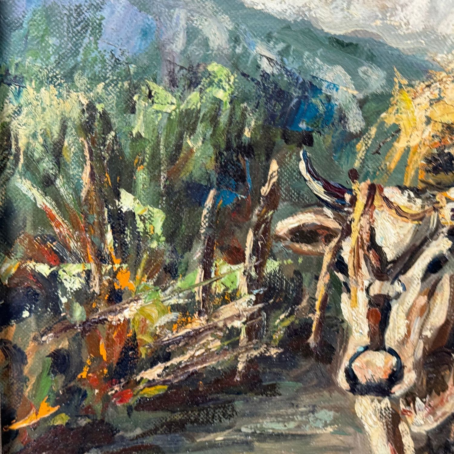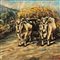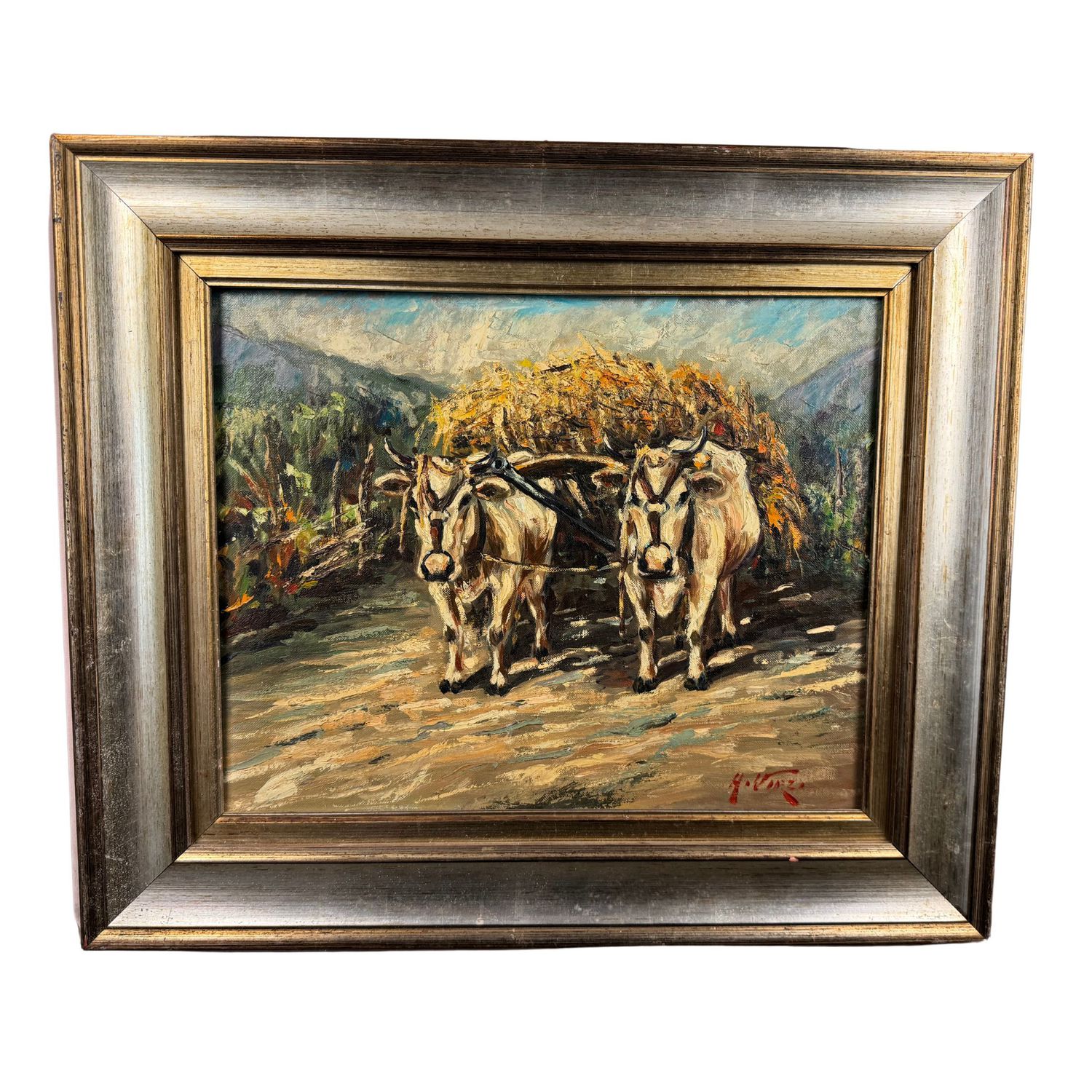 Dipinto olio su tela, periodo XX secolo (1970 - 1980), scuola Italiana, raffigurante Paesaggio con mucche.