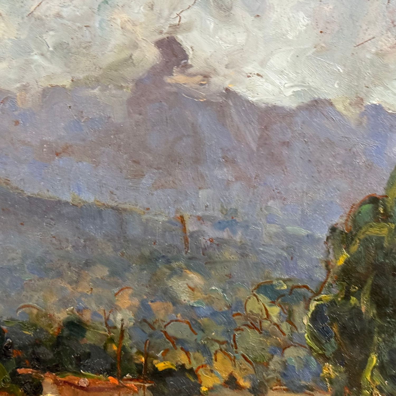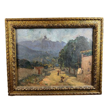 Dipinto olio su pannello, periodo XX secolo raffigurante Paesaggio.