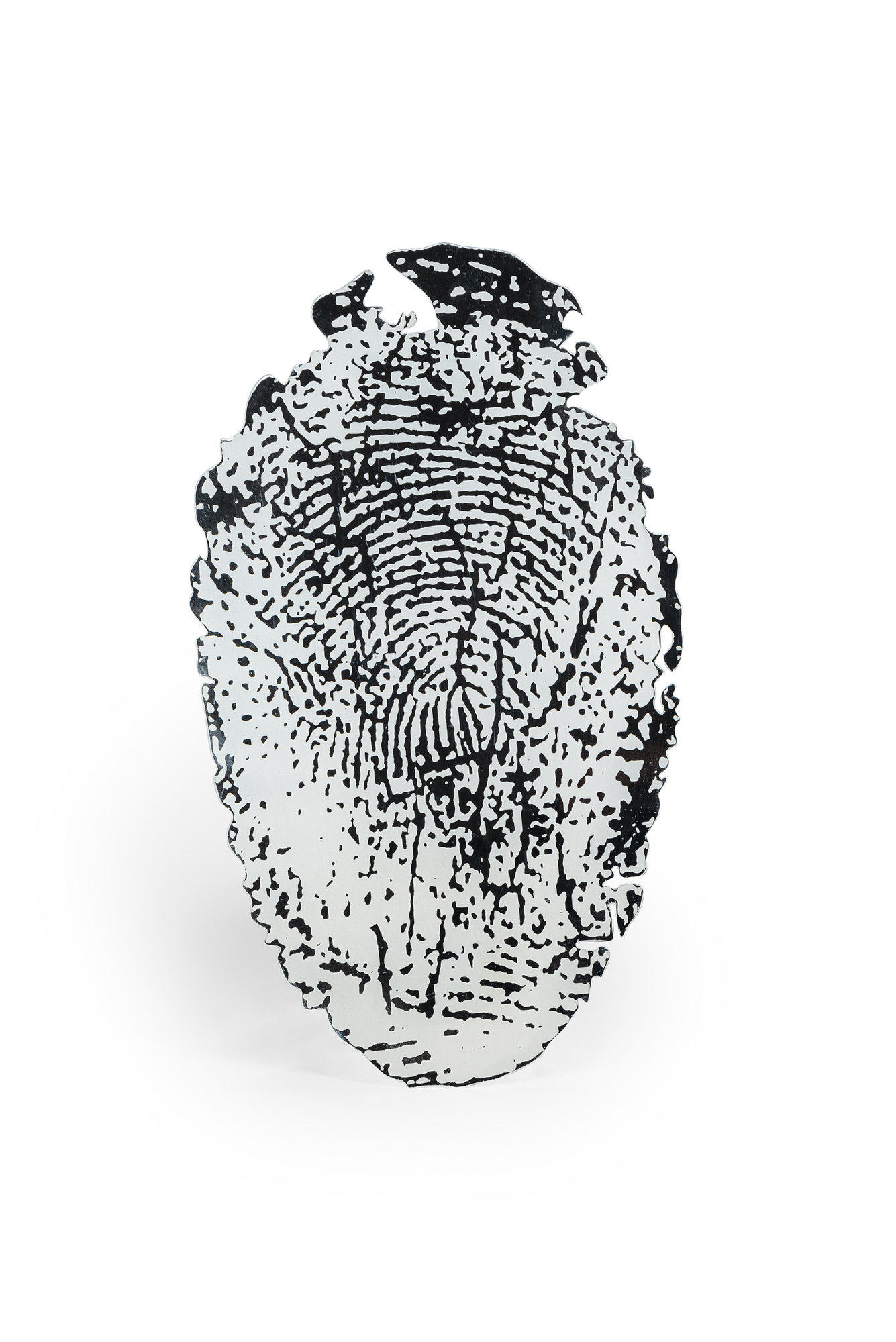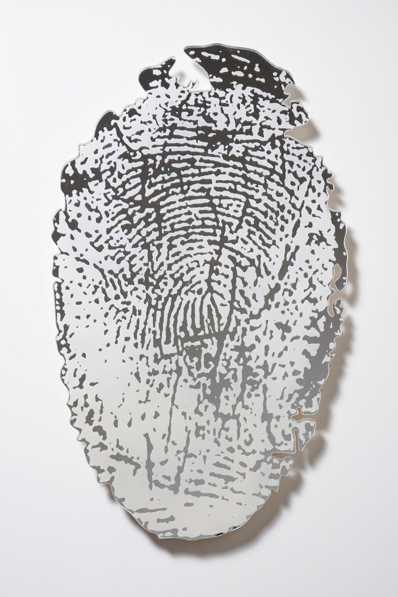 IDENTITIES is a series of real fingerprints, taken from different people encountered on the street and then transferred onto a mirrored surface.