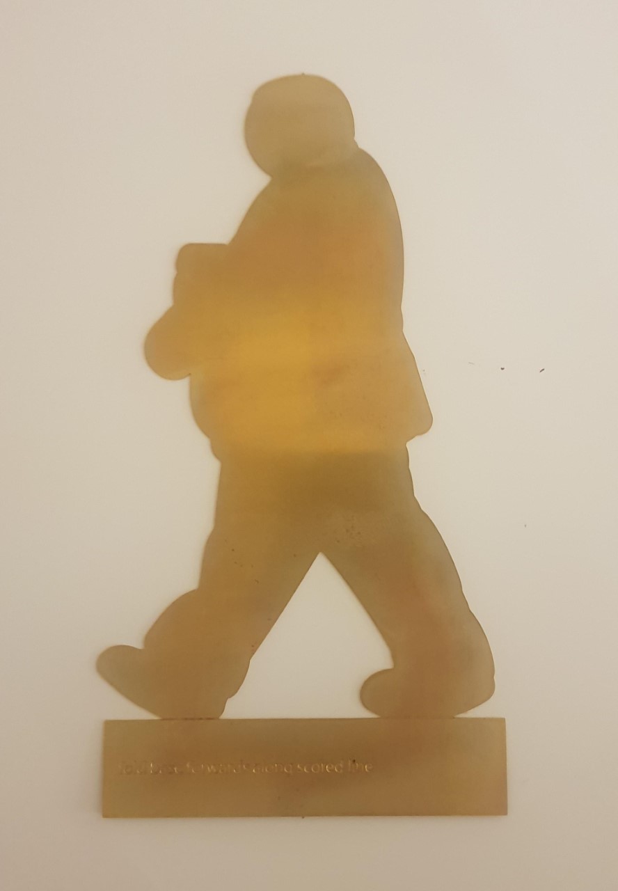 Incisioni laser su acciaio inossidabile di colore dorato.