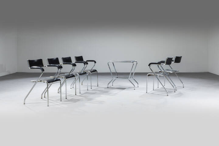 PRODUZIONE ITALIANA<BR>Set razionalista composto da sei sedie e un tavolino