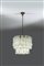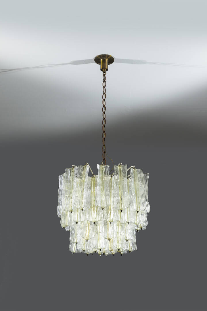 Struttura in metallo verniciato ed elementi in vetro di Murano incolore e pagliesco.