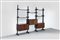 Libreria modulare in legno e particolari in ottone.
